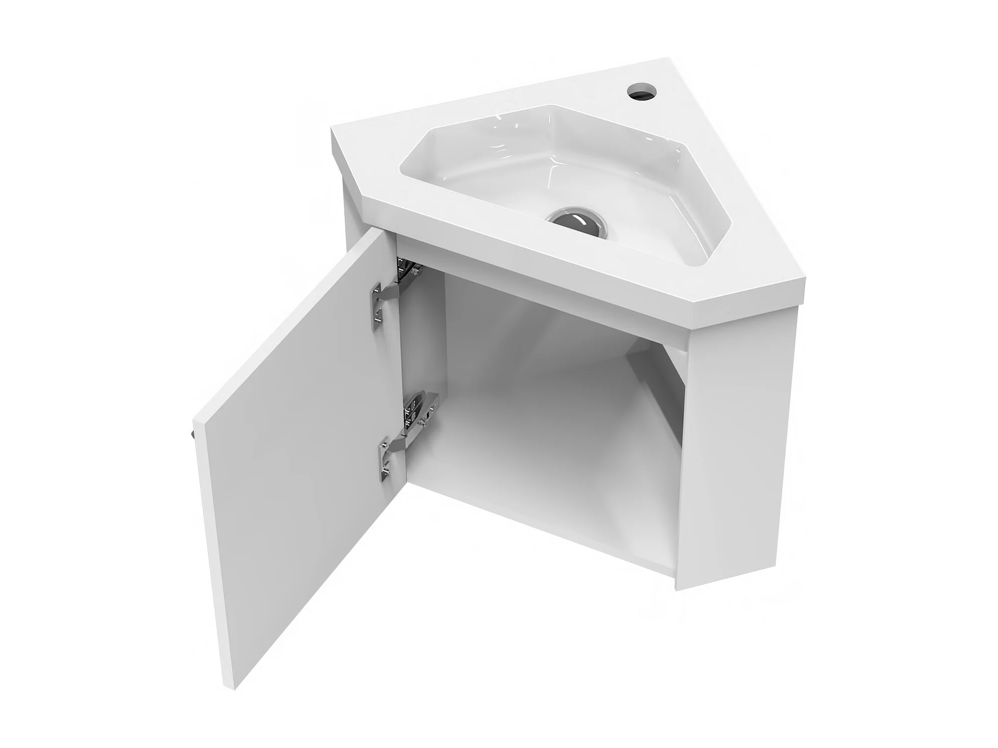 AICA Meuble de coin en pentagone, 39,5x39,5x42cm, avec vasque + une porte, Blanc