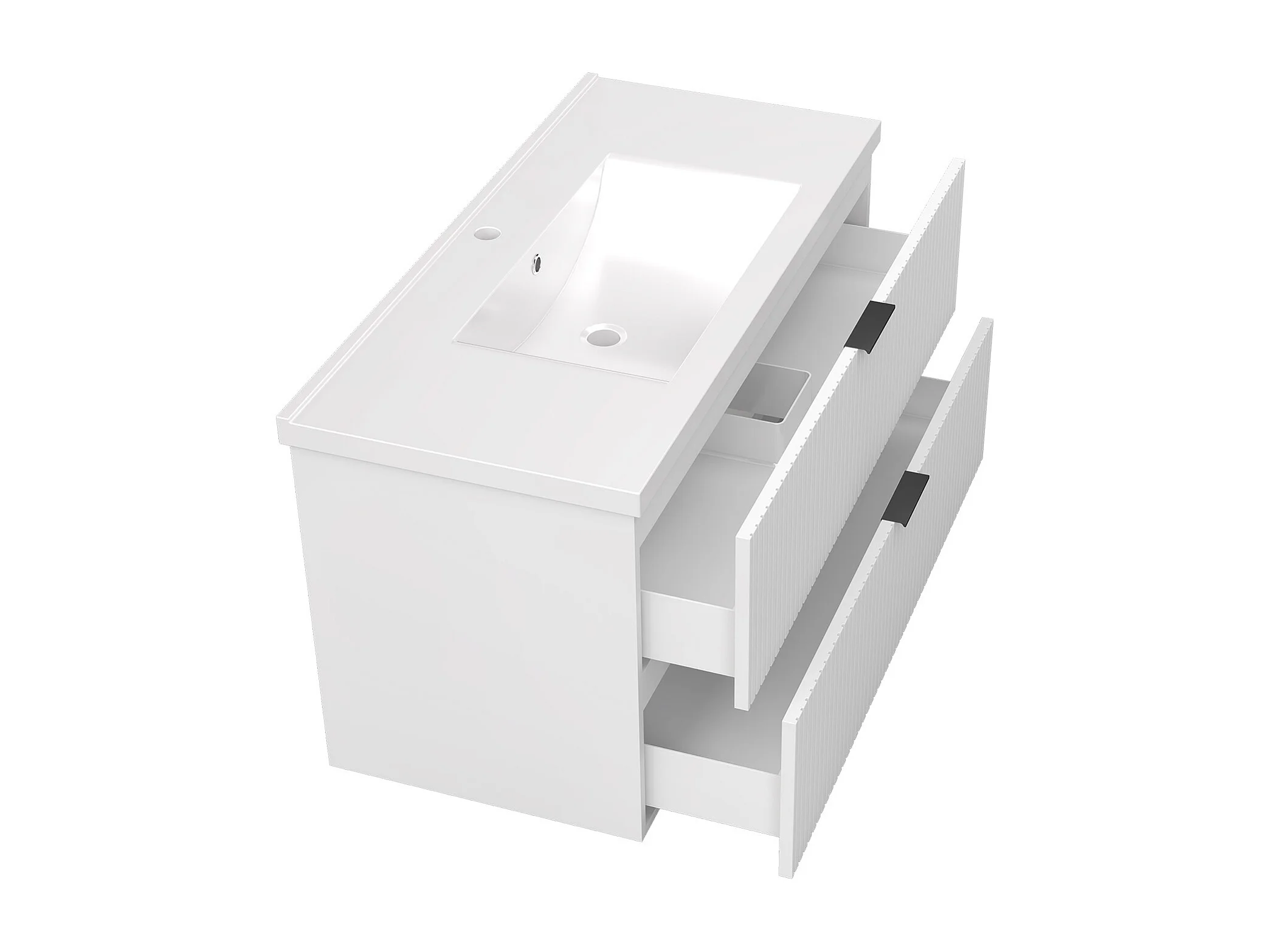 Aica Meuble de salle de bain suspendu 100 cm Blanc + 2 tiroirs, avec Vasque + Armoire salle de bain avec miroir