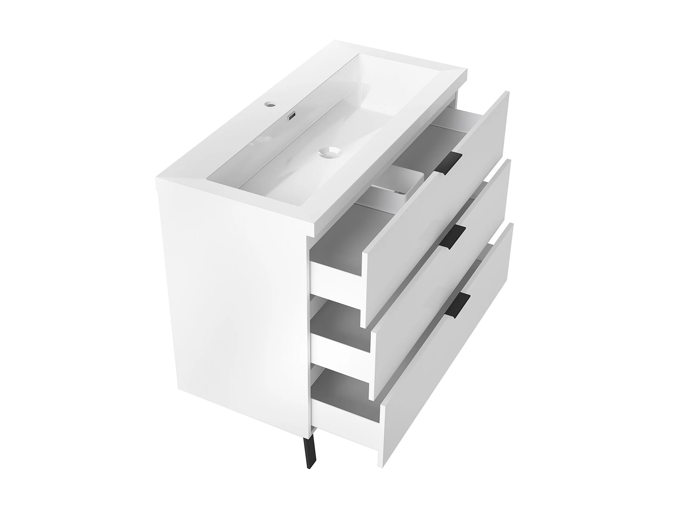 AICA Meuble salle de bain 100cm avec 3 tiroirs + 2 Pieds, Meuble simple vasque, Blanc