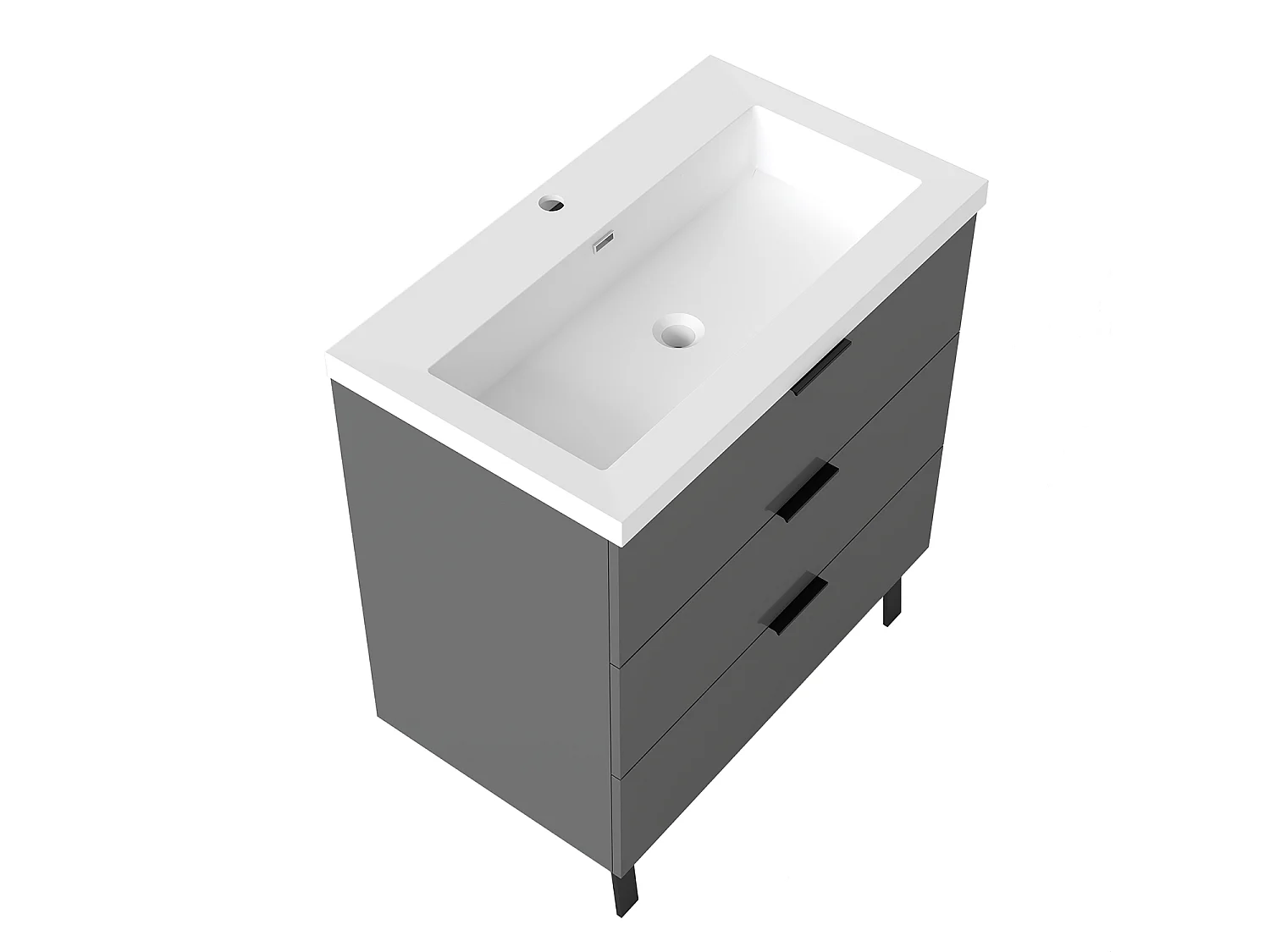 AICA Meuble salle de bain 80cm avec 3 tiroirs + 2 Pieds, Meuble simple vasque, Anthracite