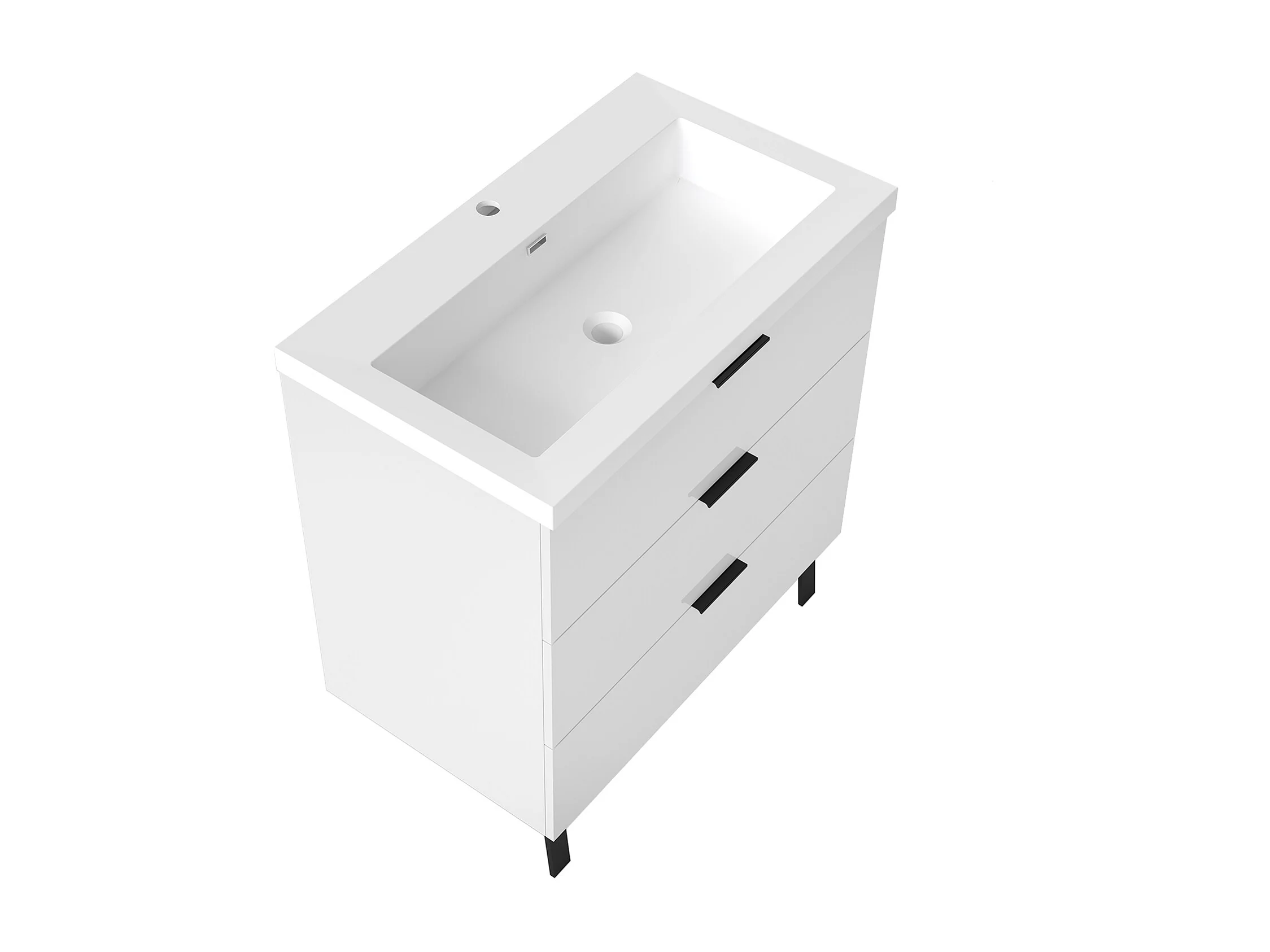 AICA Meuble salle de bain 80cm avec 3 tiroirs + 2 Pieds, Meuble simple vasque, Blanc
