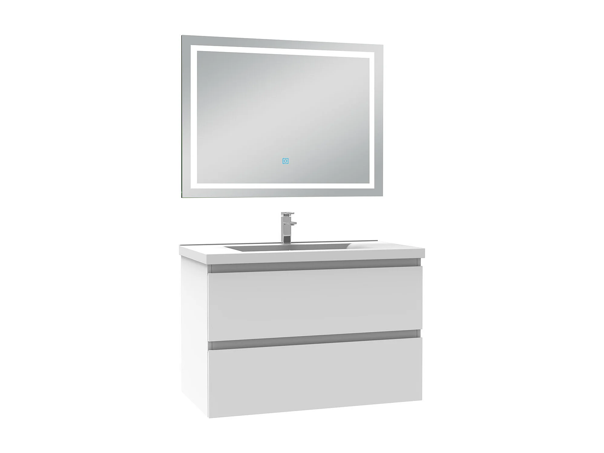 AICA Meuble Salle de Bain 80cm Blanc simple vasque + Miroir LED