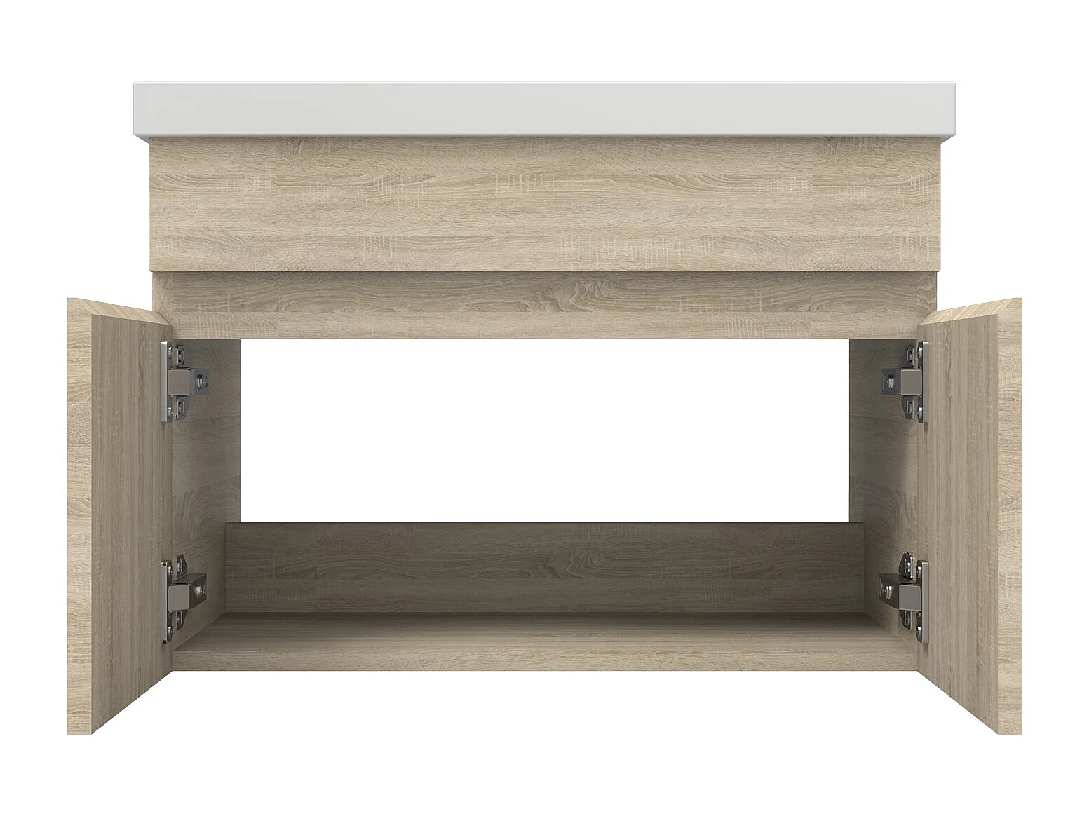 AICA Meuble de coin en pentagone, 39,5x39,5x42cm, avec vasque + une porte, Chêne