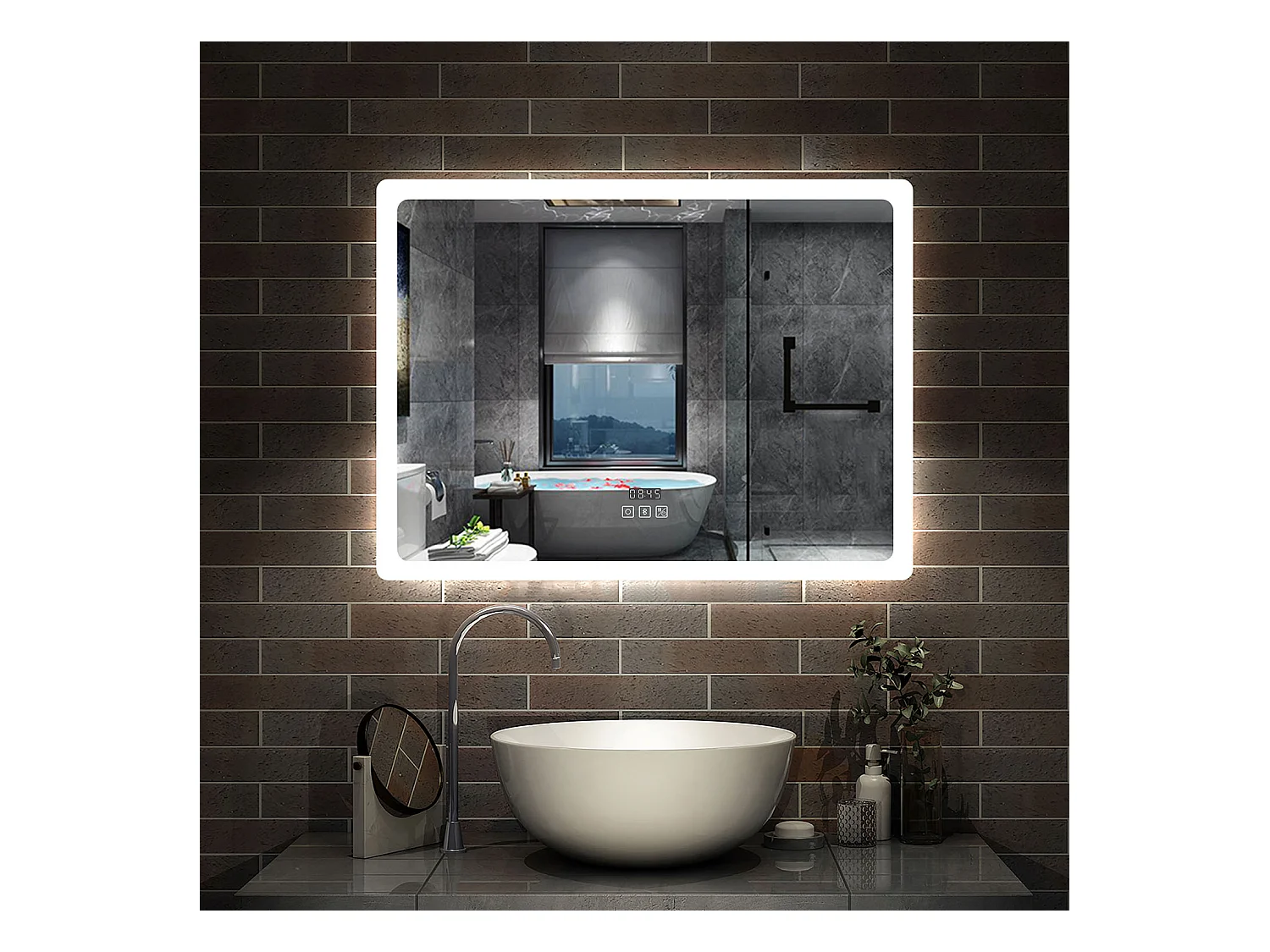 AICA Miroir LED 80x60cm avec éclairage intégré avec anti-buée, Modèle soleil