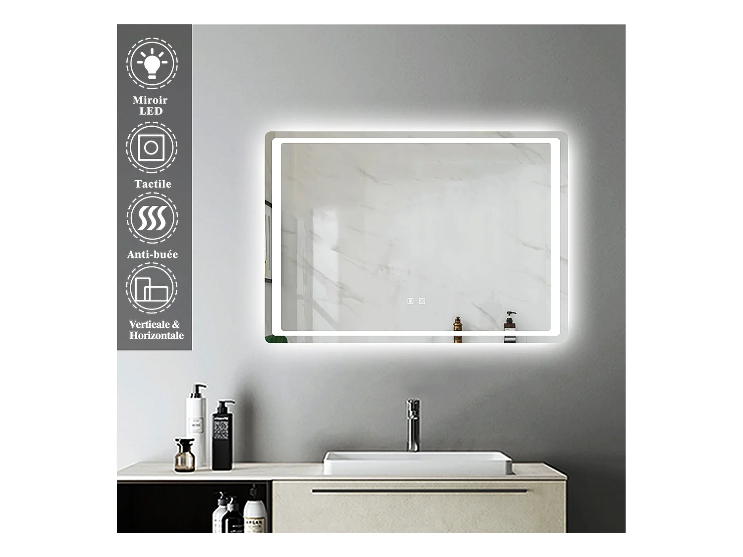Miroir de Salle de Bain Anti-buée Miroir Lumineux LED à Double Contrôle 80 * 60cm Aica