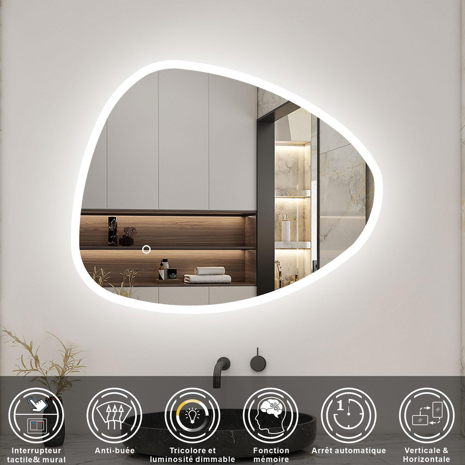 AICA Miroir de salle de bain asymétrique 100x80cm led Teardrop Mirror 3 Colours Dimmable + Anti-buée + Mémoire