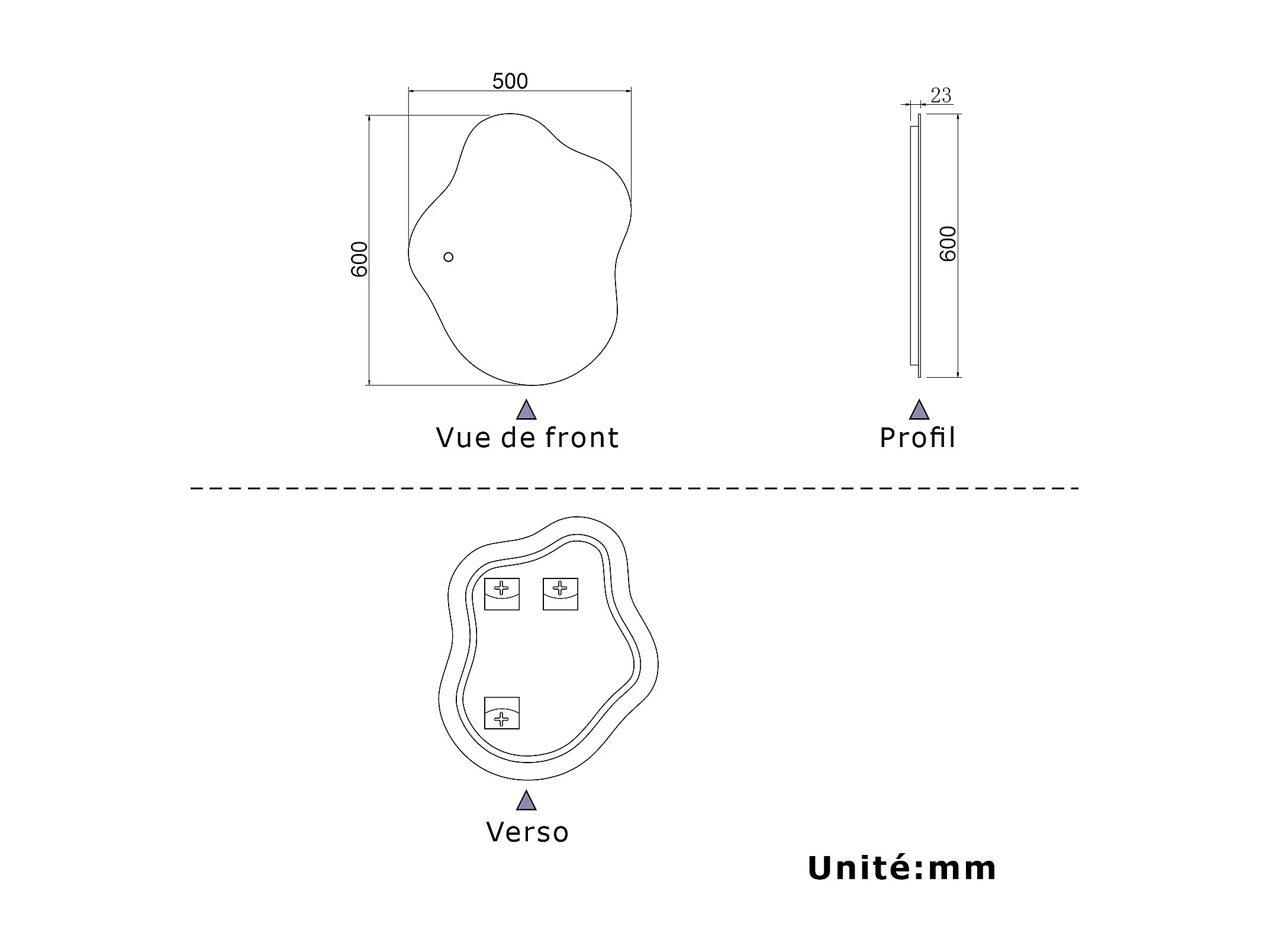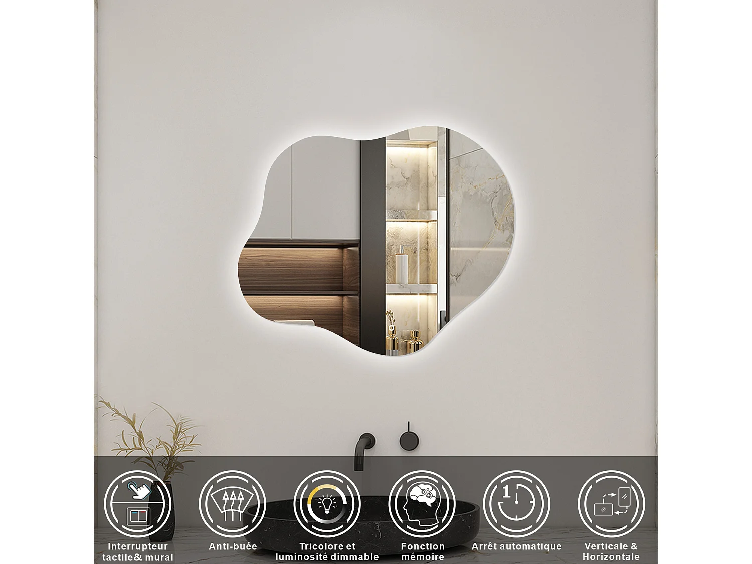 AICA Miroir de salle de bain Asymétrique en Forme de Nuage 60×50cm, Rétro-Éclairage, Design Irrégulier, Tricolore + Dimmable + Anti-buée + Mémoire