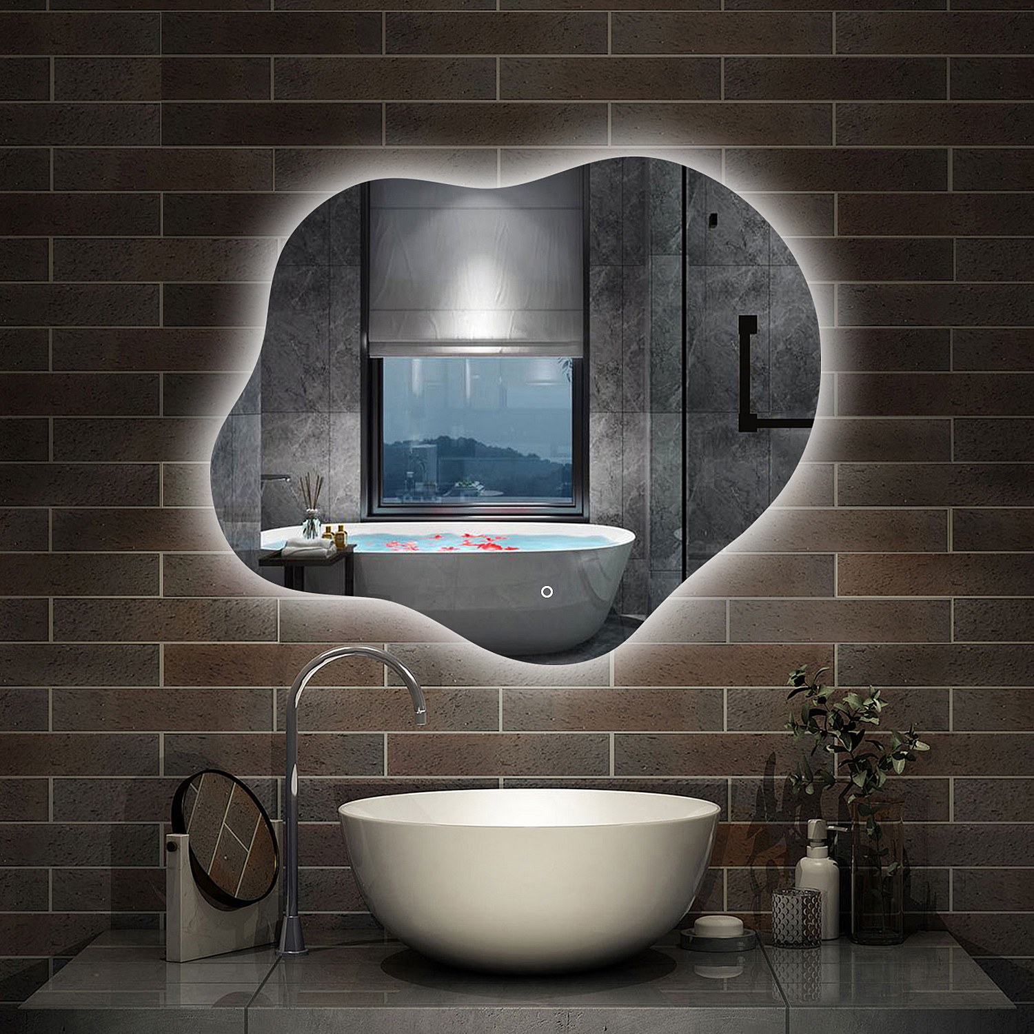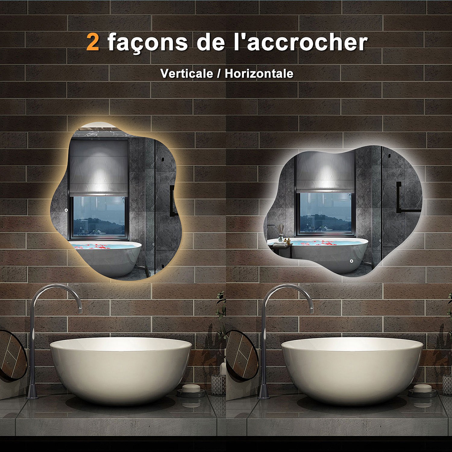 AICA Miroir de salle de bain en forme de nuage 60×50cm, rétro-éclairage, Design Asymétrique, 3 Couleurs + Dimmable + Anti-buée + Mémoire