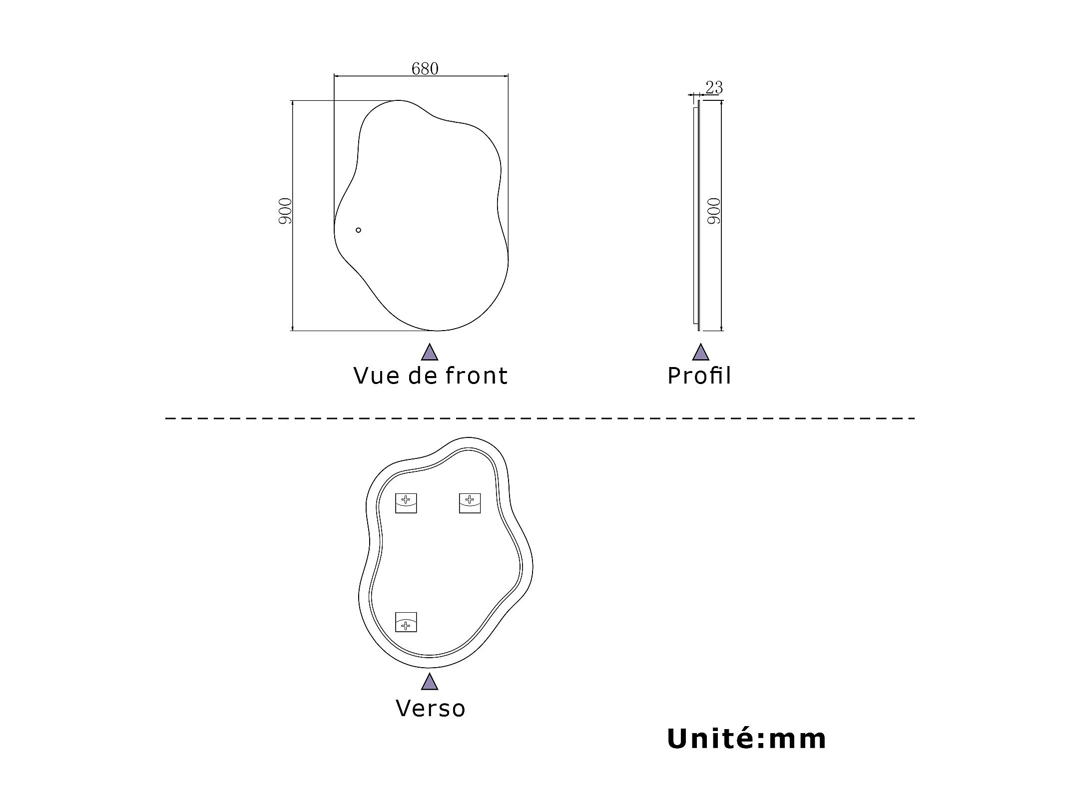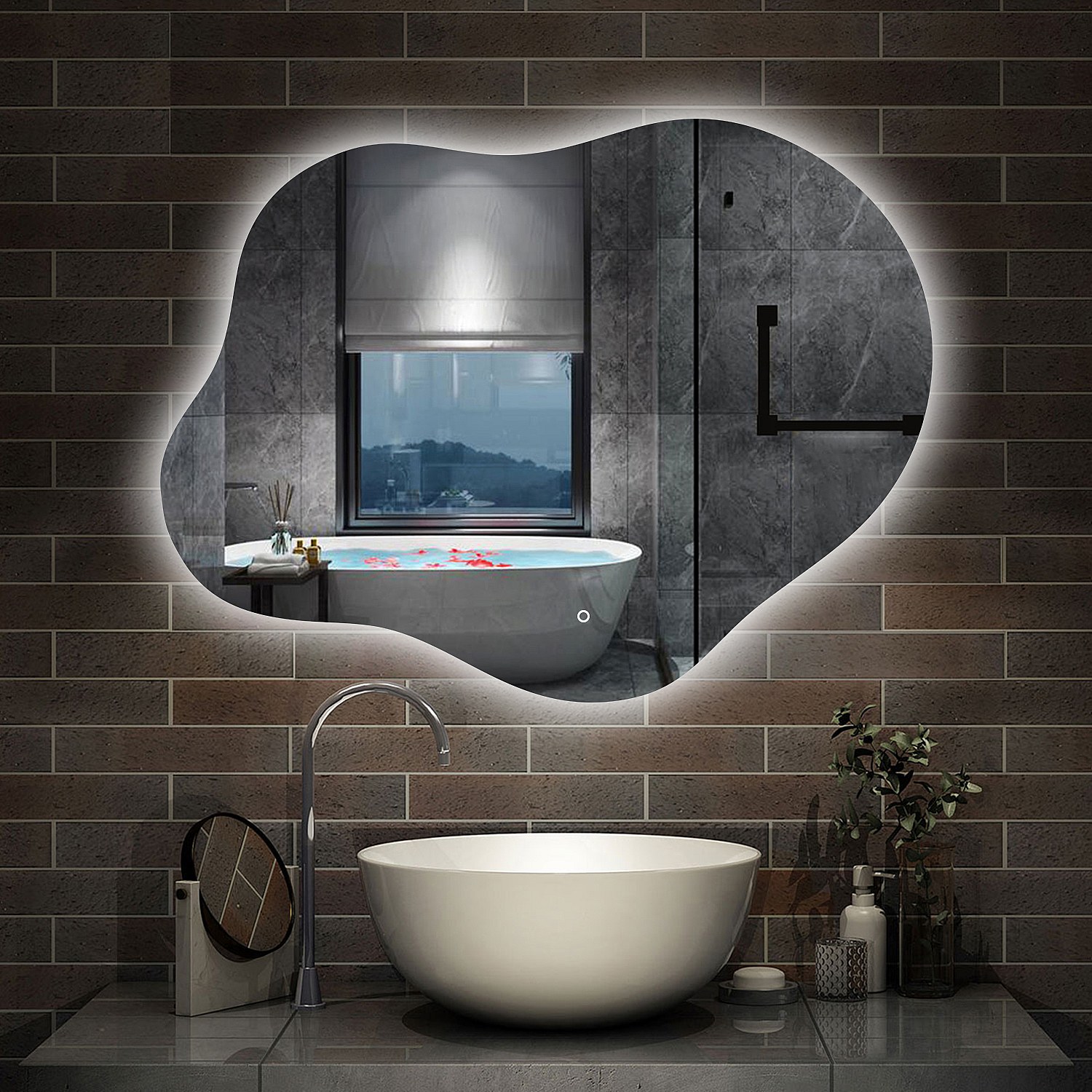 AICA Miroir de salle de bain en forme de nuage 90×68cm, rétro-éclairage, Design Asymétrique, 3 Couleurs + Dimmable + Anti-buée + Mémoire