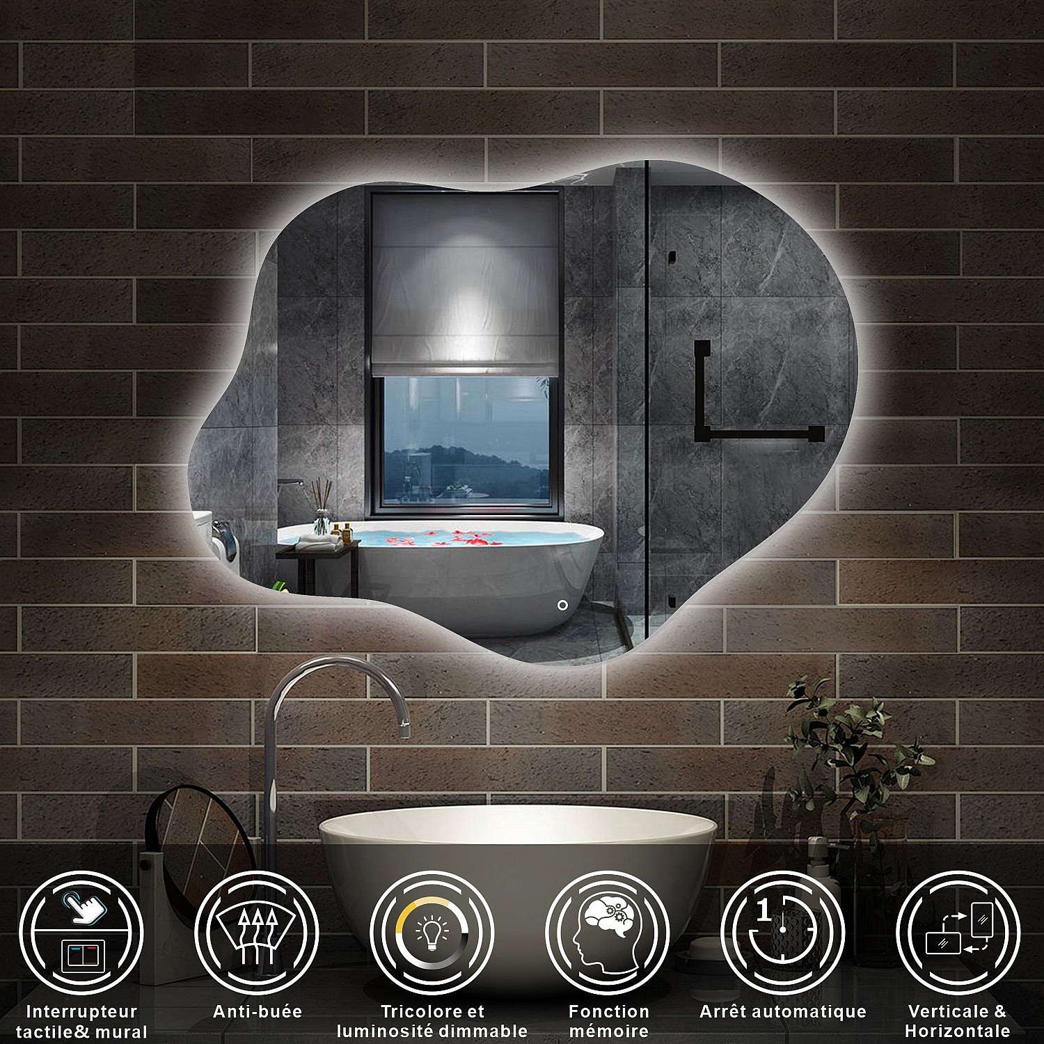 AICA Miroir salle de bain Asymétrique LED 100x80cm, Teardrop Mirror, et Tricolore Dimmable et Anti-buée