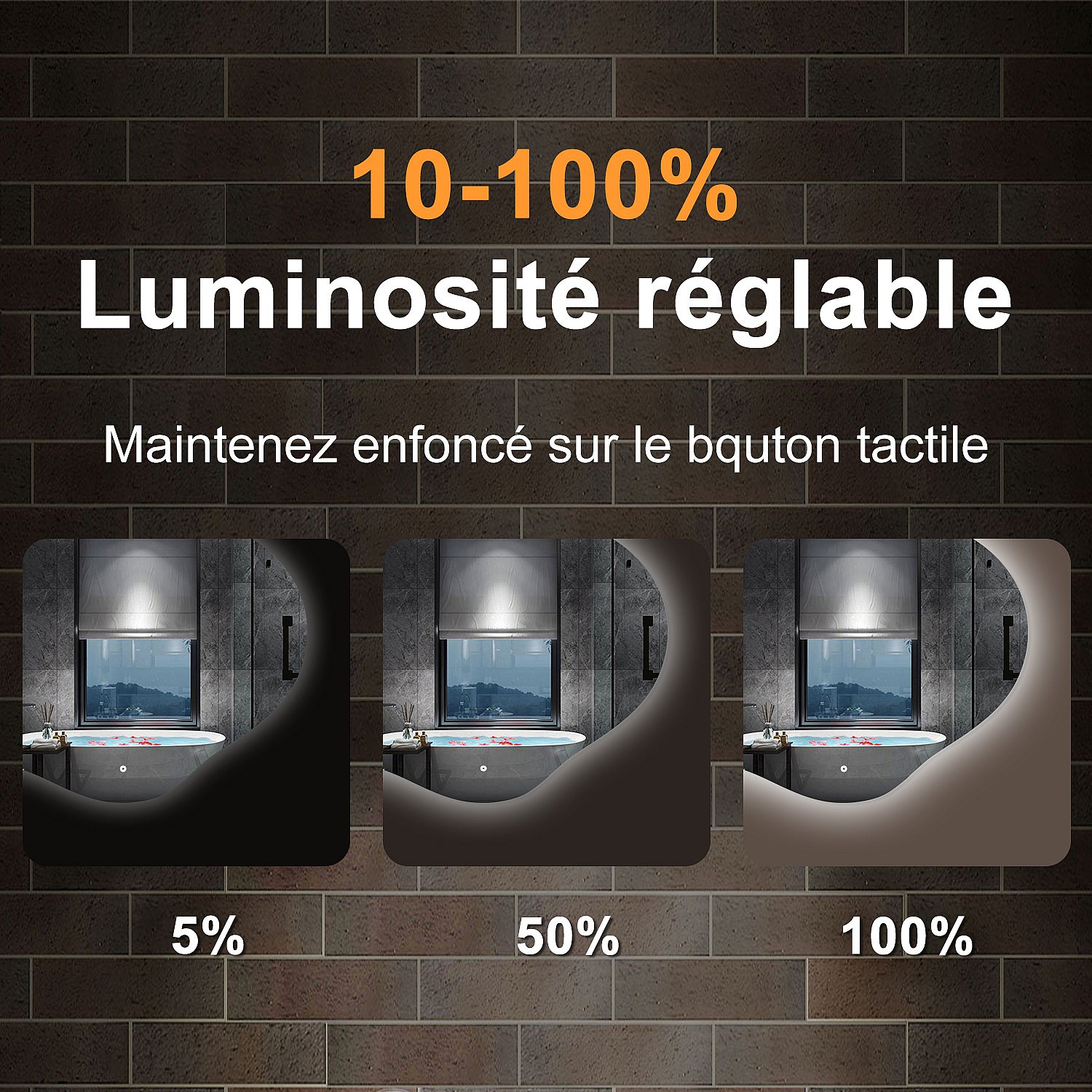 AICA LED Miroir lumineux 80 x 65cm avec anti-buée + 3 Couleurs + dimmable + mémoire, Miroir LED salle de bain