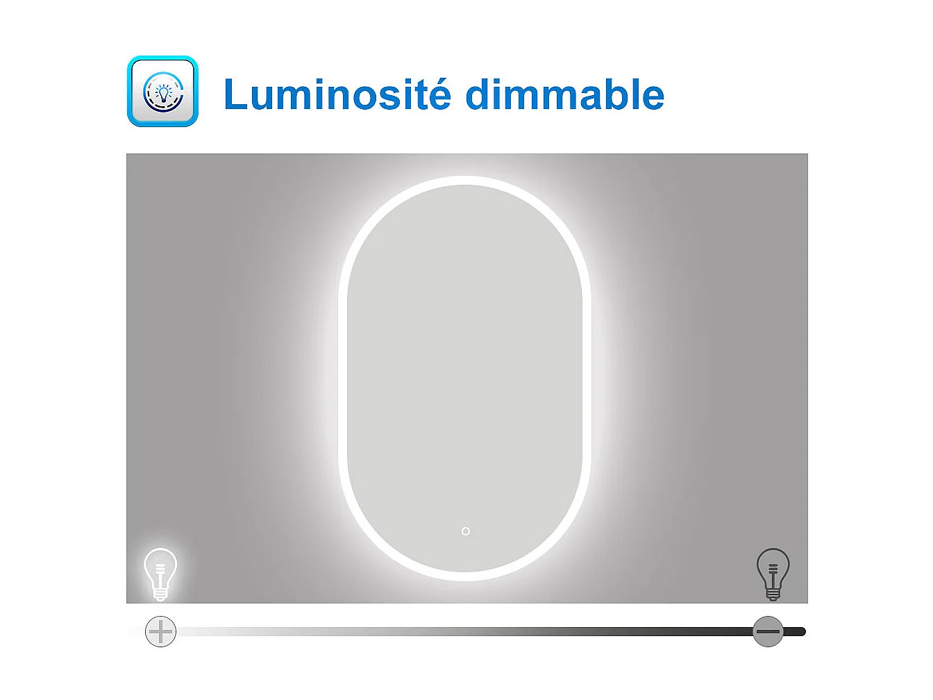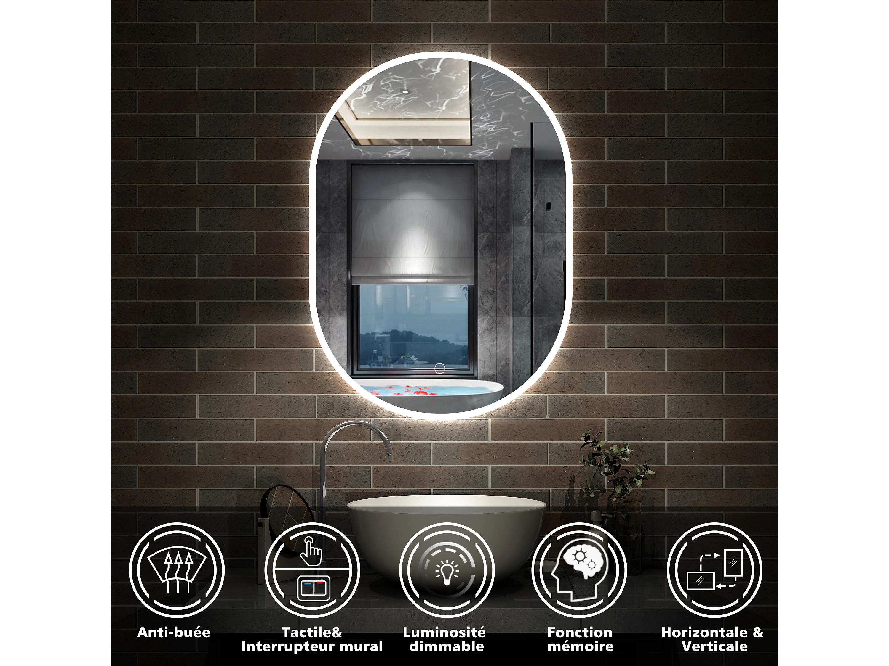 AICA Miroir de salle de bain ovale 45x80cm, mémoire et dimmable et anti-buée, IP44, CE // IP44