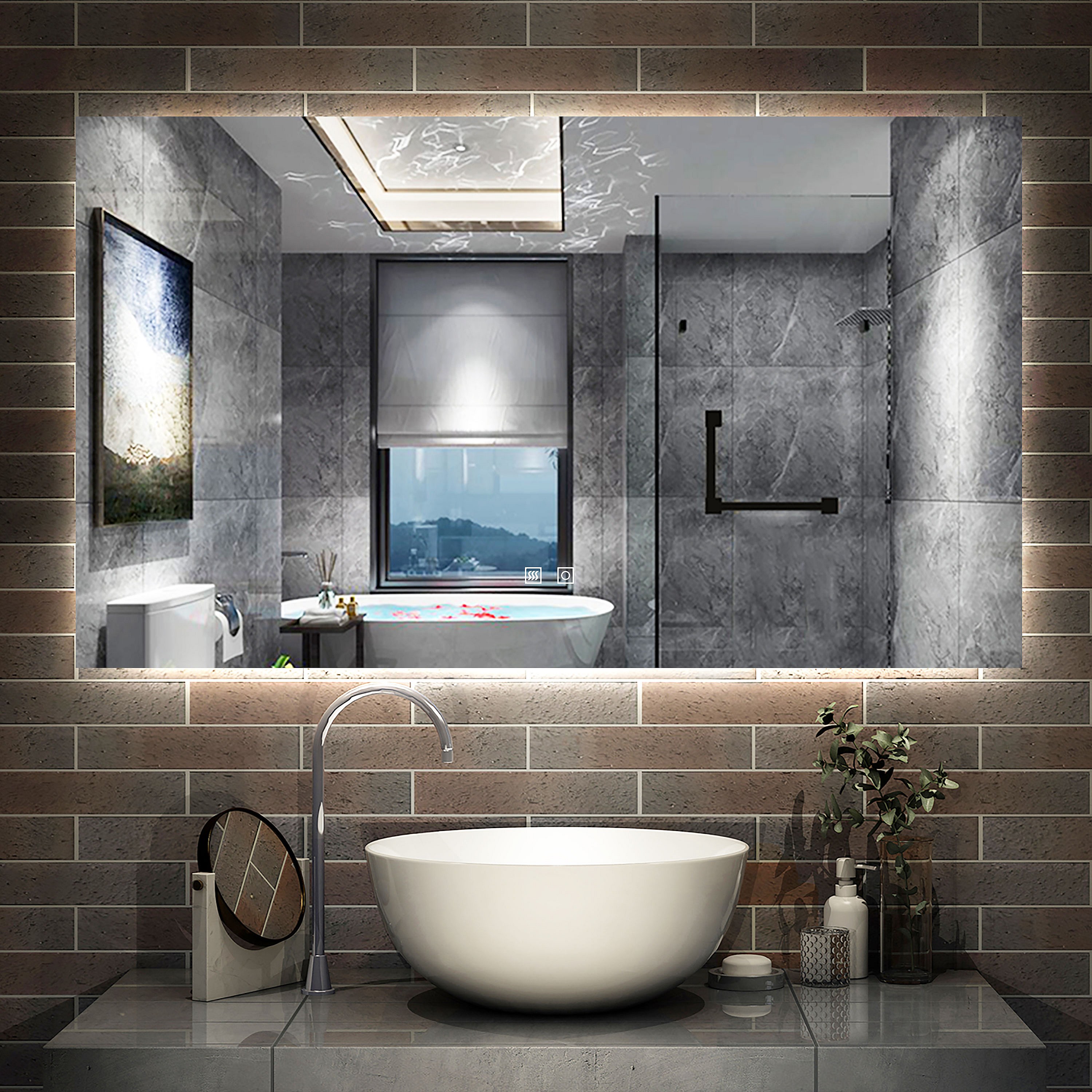Miroir LED 70x50cm avec Anti-buée + Dimmable, Mural Miroir salle de bain