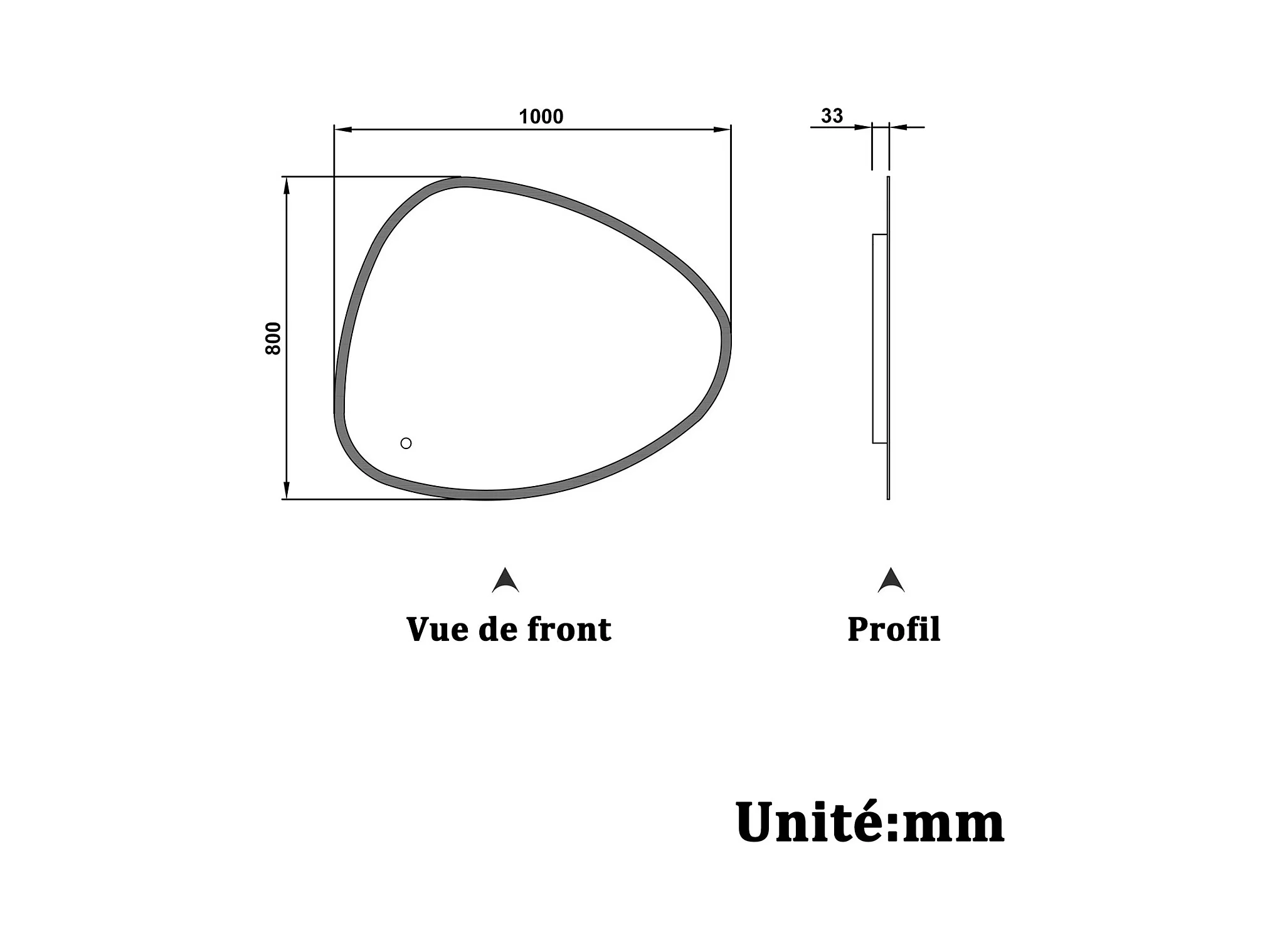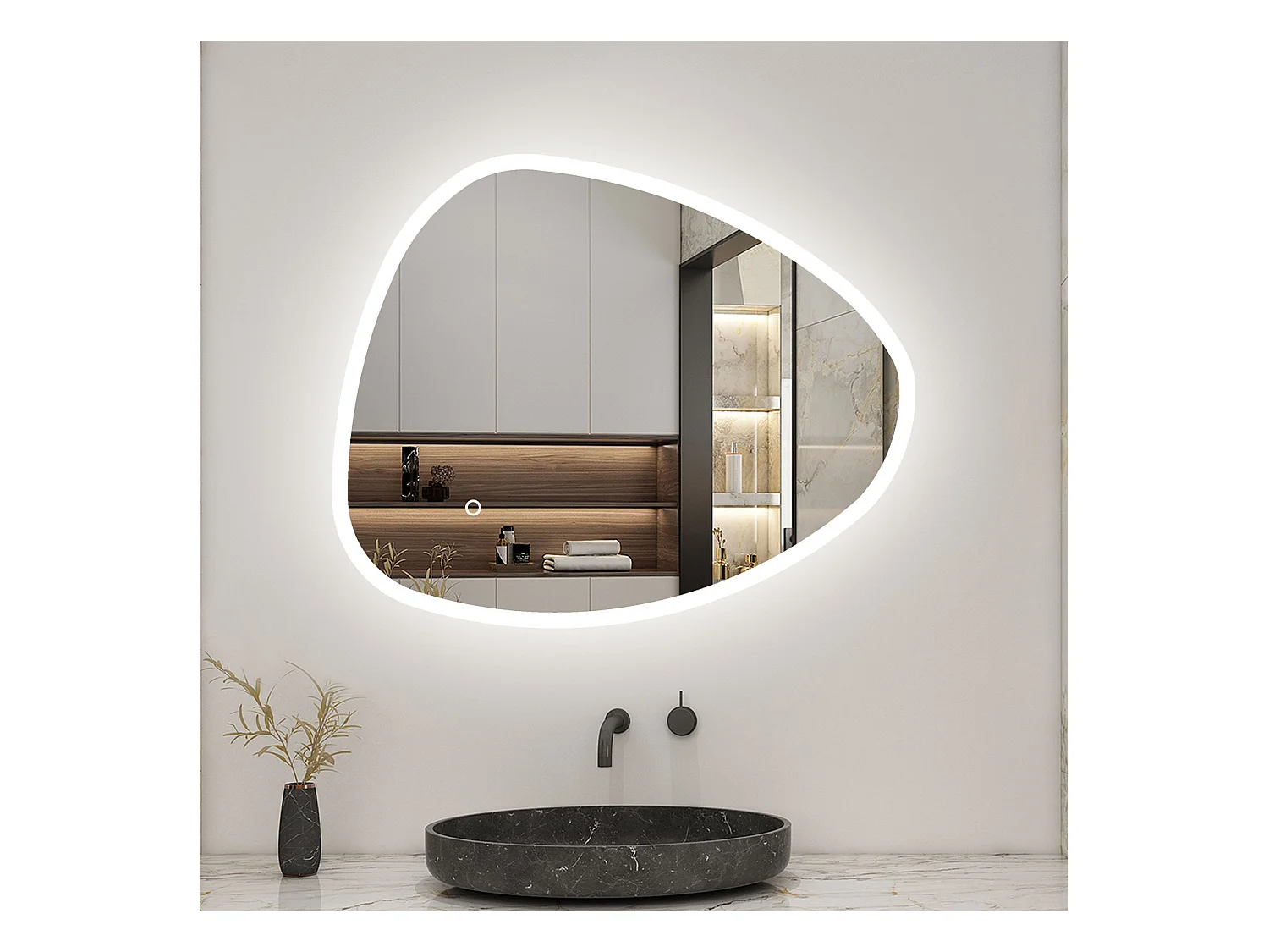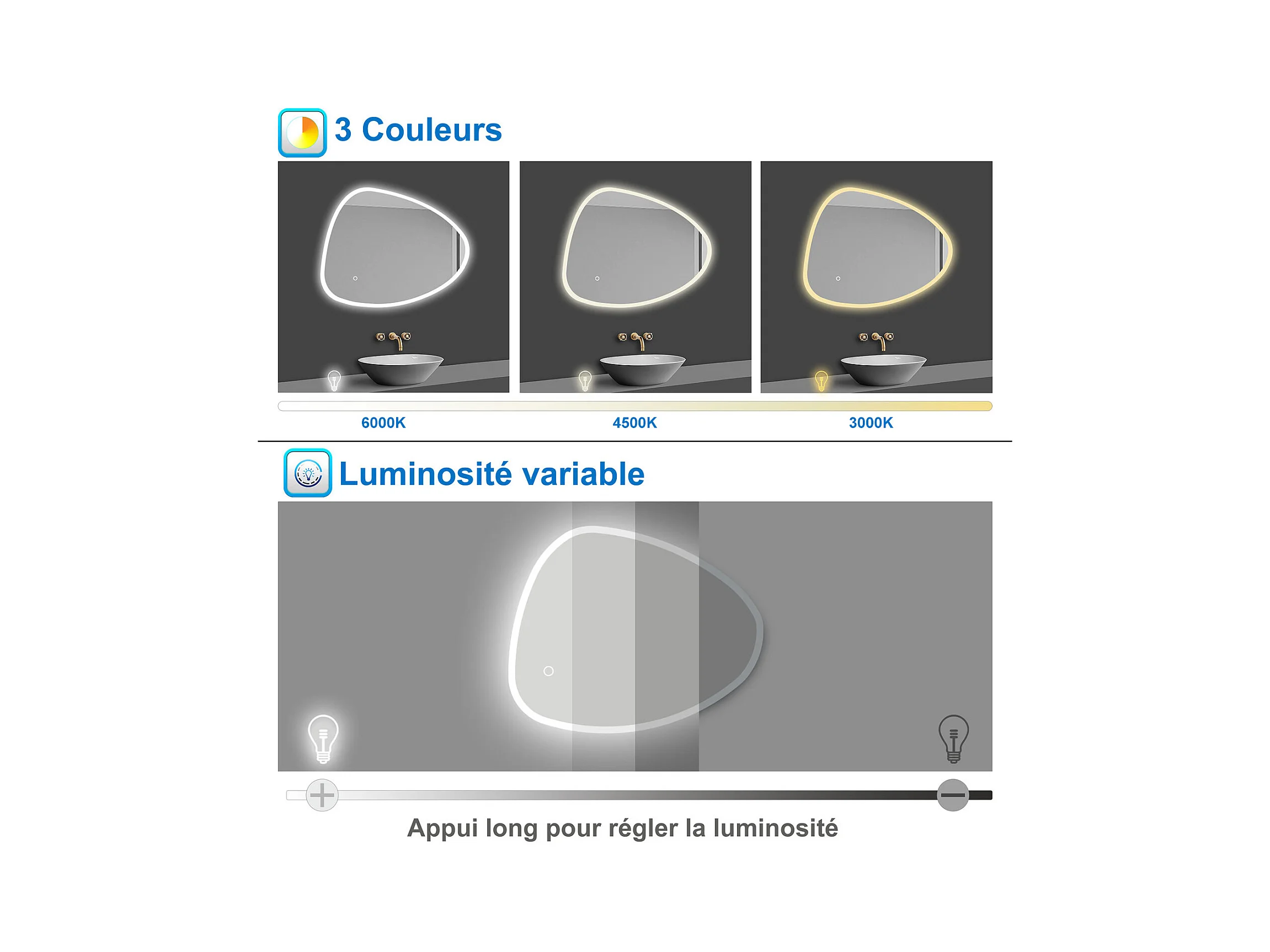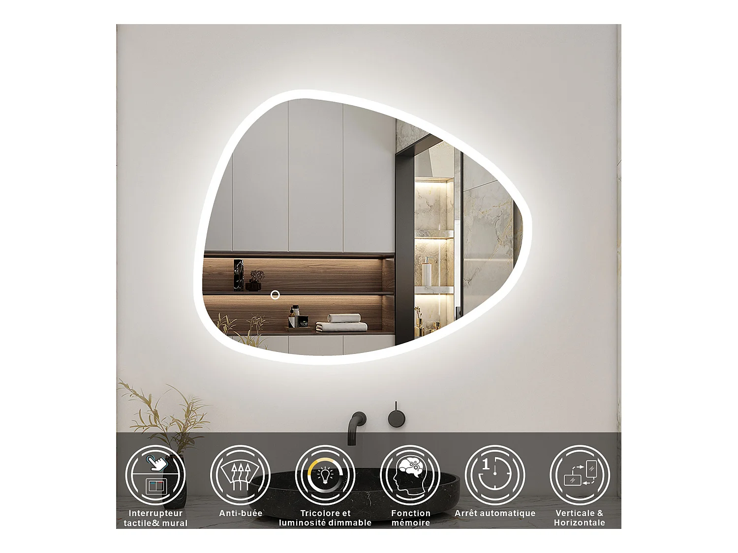 AICA Miroir LED 100x80cm Design Asymétrique, Teardrop Mirror, avec 3 Colours Dimmable + Anti-buée + Mémoire