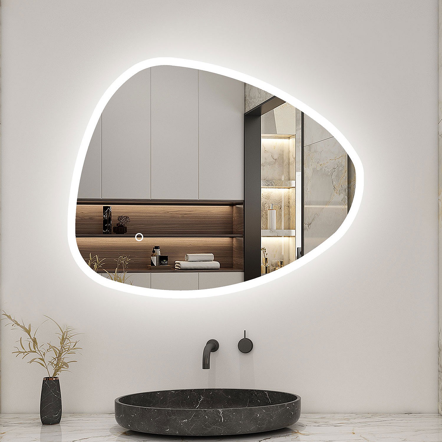 AICA Miroir LED 120x80cm Design Asymétrique, Teardrop Mirror, avec 3 Colours Dimmable + Anti-buée + Mémoire