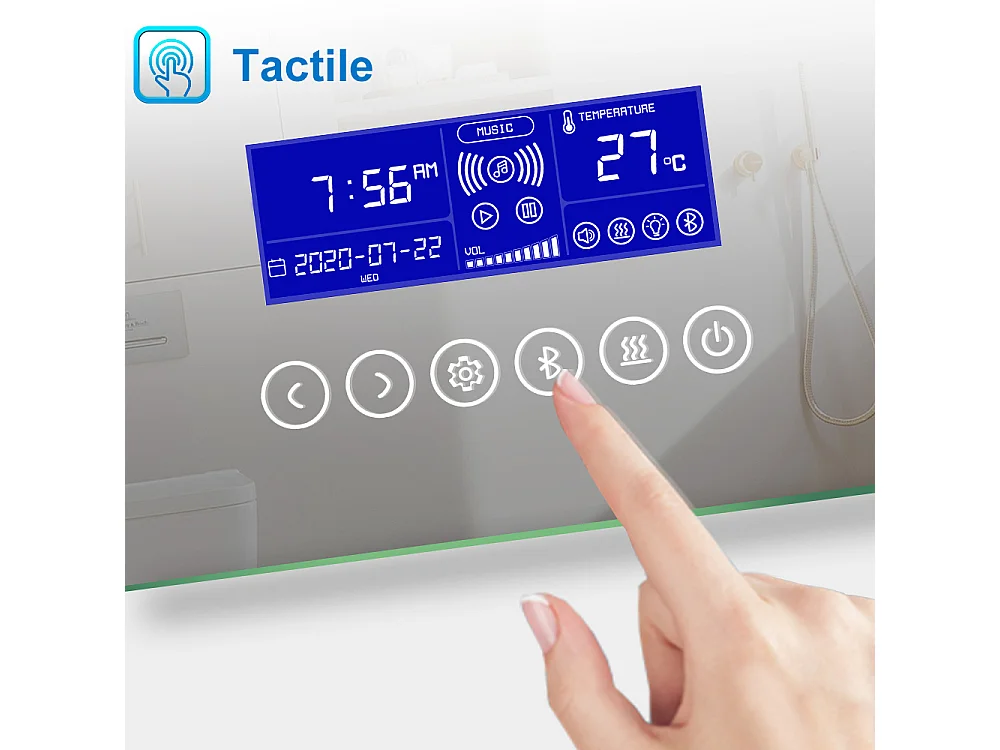 Aica Miroir Lumineux à LED Réglable Intelligent 140x80cm, Miroir de salle de bain avec éclairage intégré + antibuée + Miroir grossissant + Bluetooth