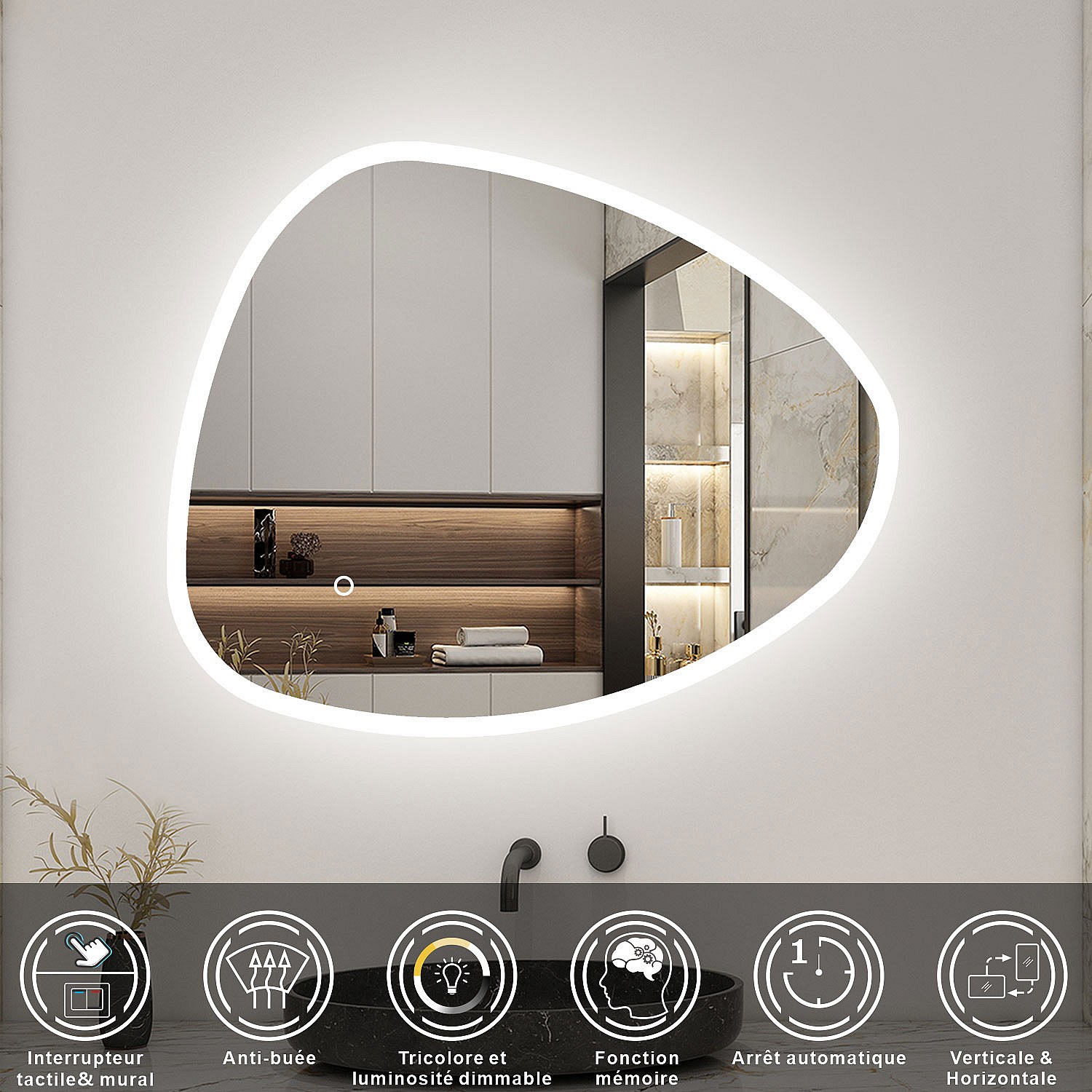 AICA Miroir lumineux Asymétrique LED 100x80cm, Teardrop Mirror, Tricolore + Dimmable + Anti-buée