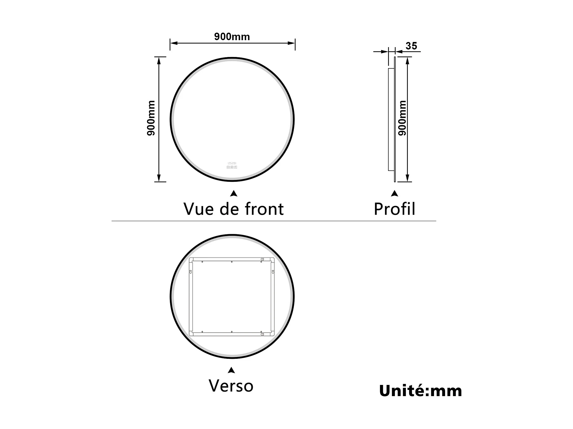 Aica Miroir lumineux de salle de bain Bluetooth Rond 90cm Avec Horloge + 3 Couleurs + Dimmable + Anti-Buée, Noir Cadre Non-Métallique