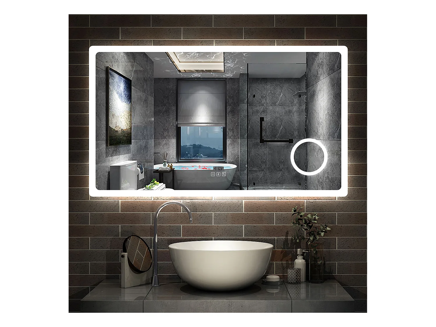 AICA Miroir salle de bain Bluetooth 160x80cm + 3x Loupe + Horloge + Tricolore + Anti-Buée Dimmable,Mémoire,tactile,LED