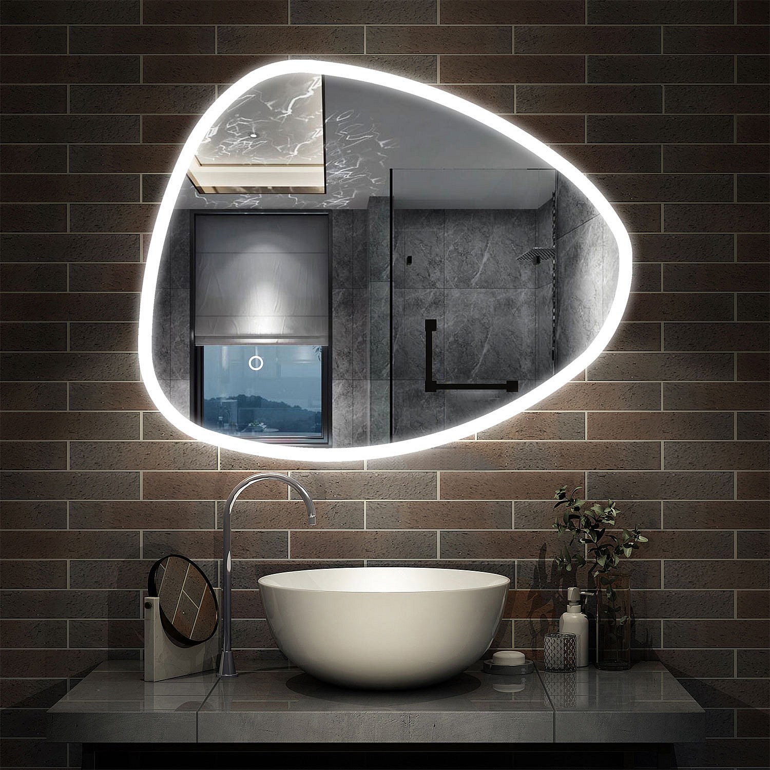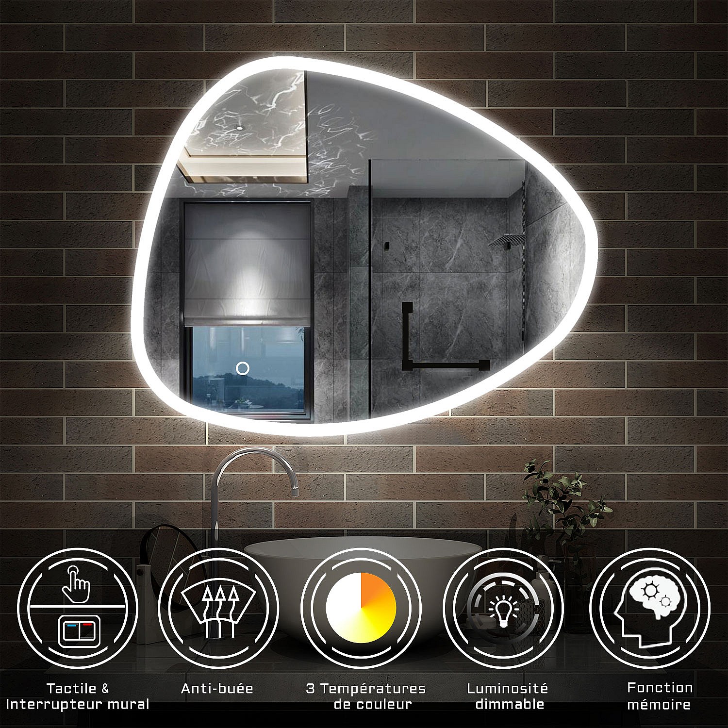 AICA Miroir salle de bain Lumineux 100x80cm Design Asymétrique, Teardrop Mirror, et 3 Colours Dimmable et Anti-buée et Mémoire