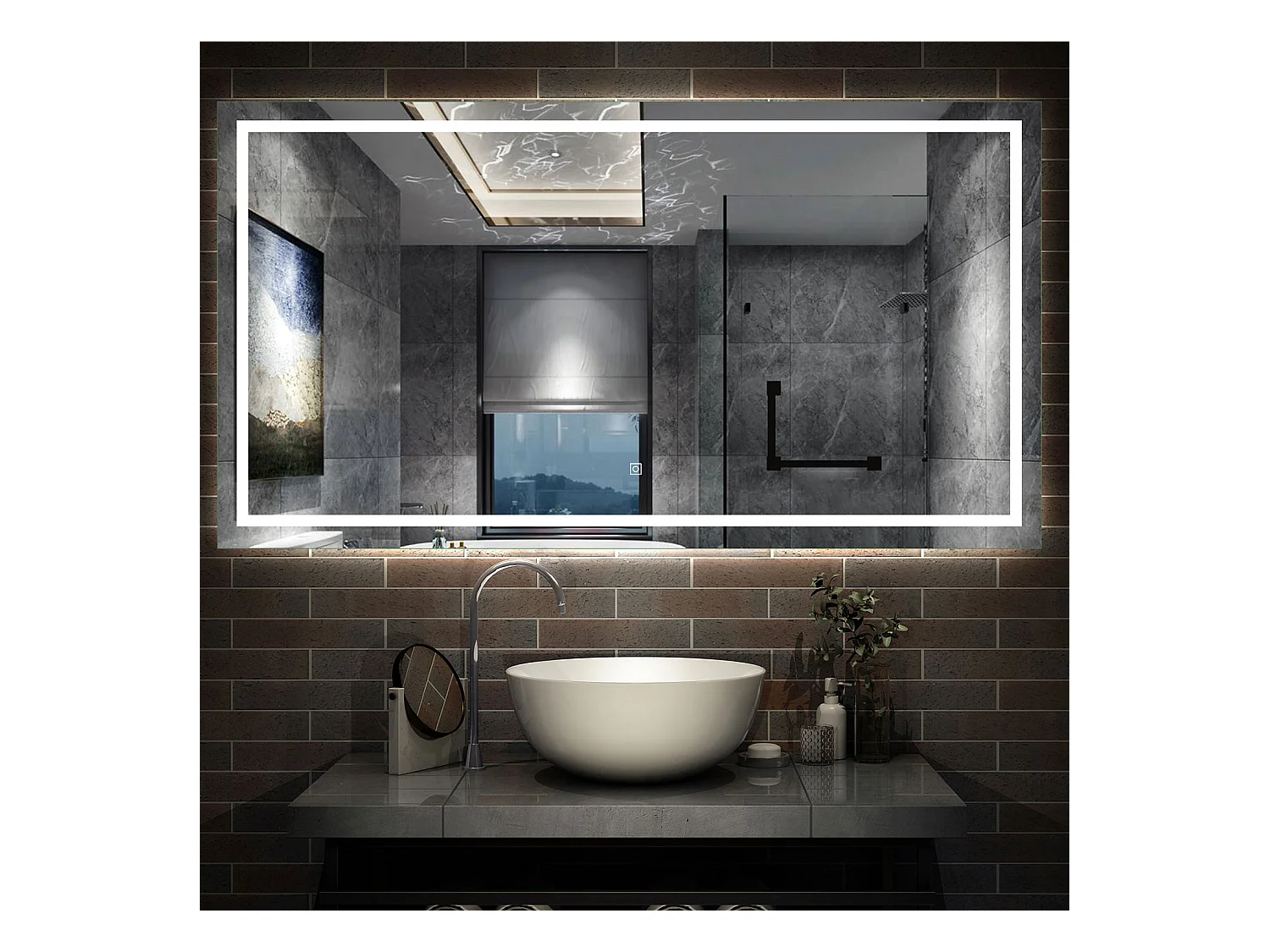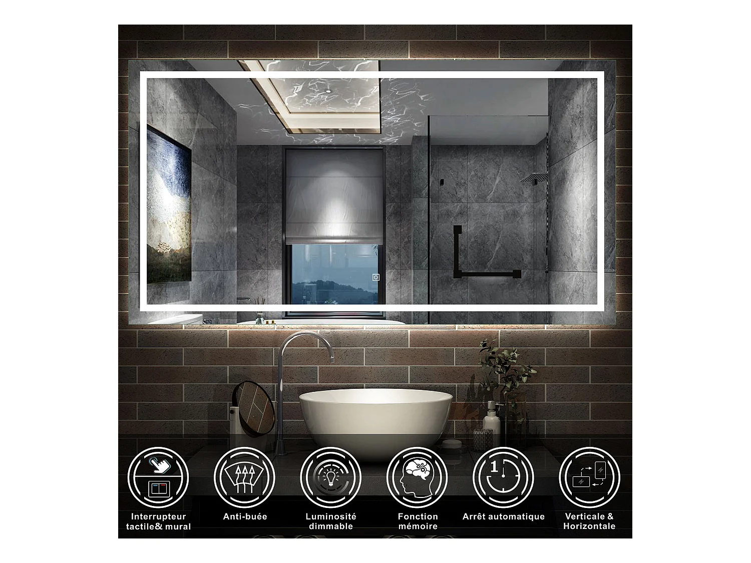 AICA Miroir Salle de Bain Lumineux Anti-buée, et éclairage 160 x 70cm Dimmable, Mémoire, CE // IP44 HD Verre Miroir-Mural