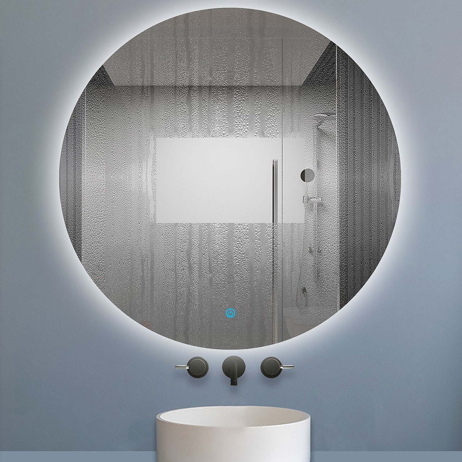 AICA Miroir Salle de Bain Rond rétro-éclairé 100cm Anti-Buée, Dimmable, Fonction Mémoire,CE// IP44