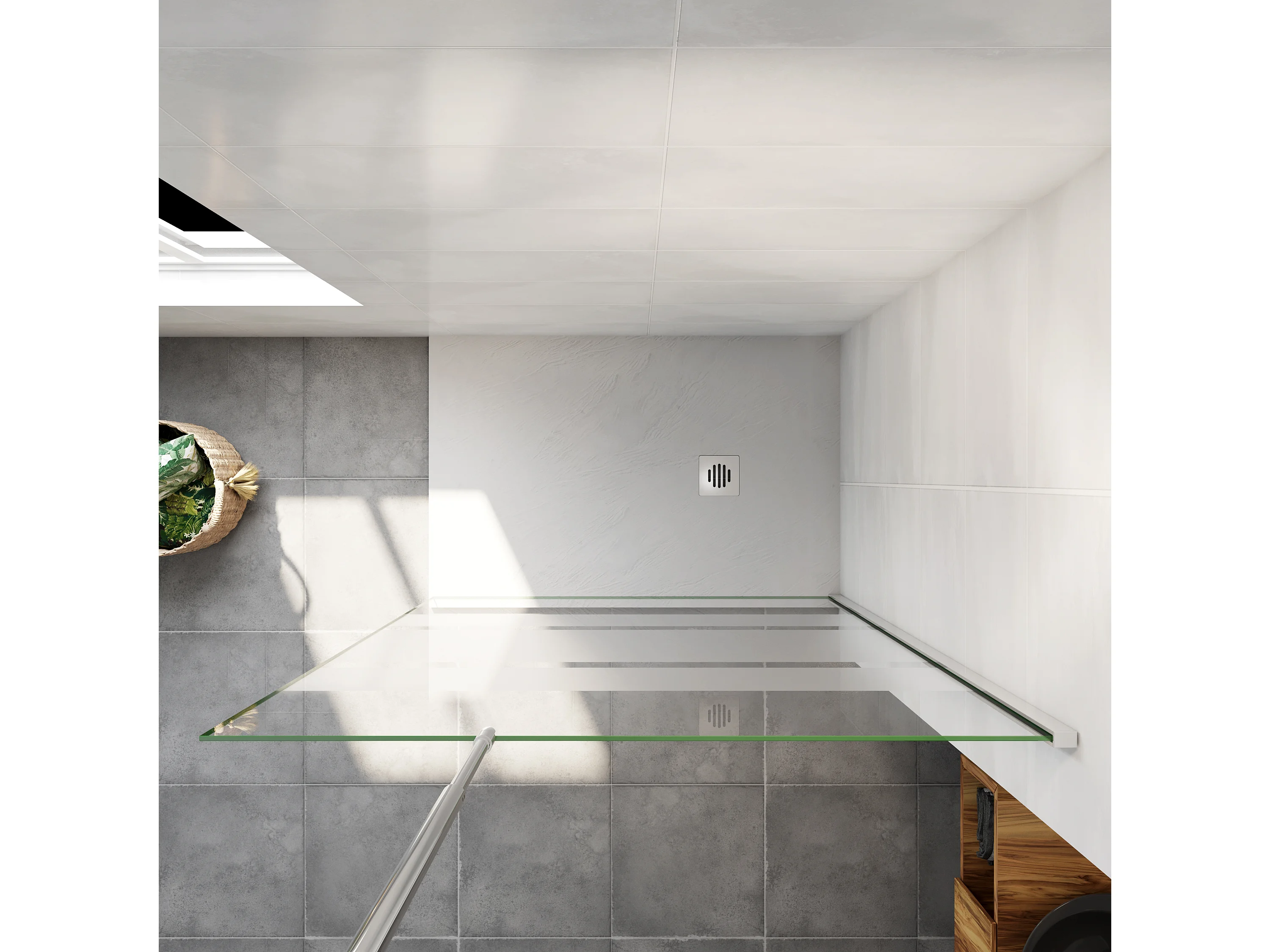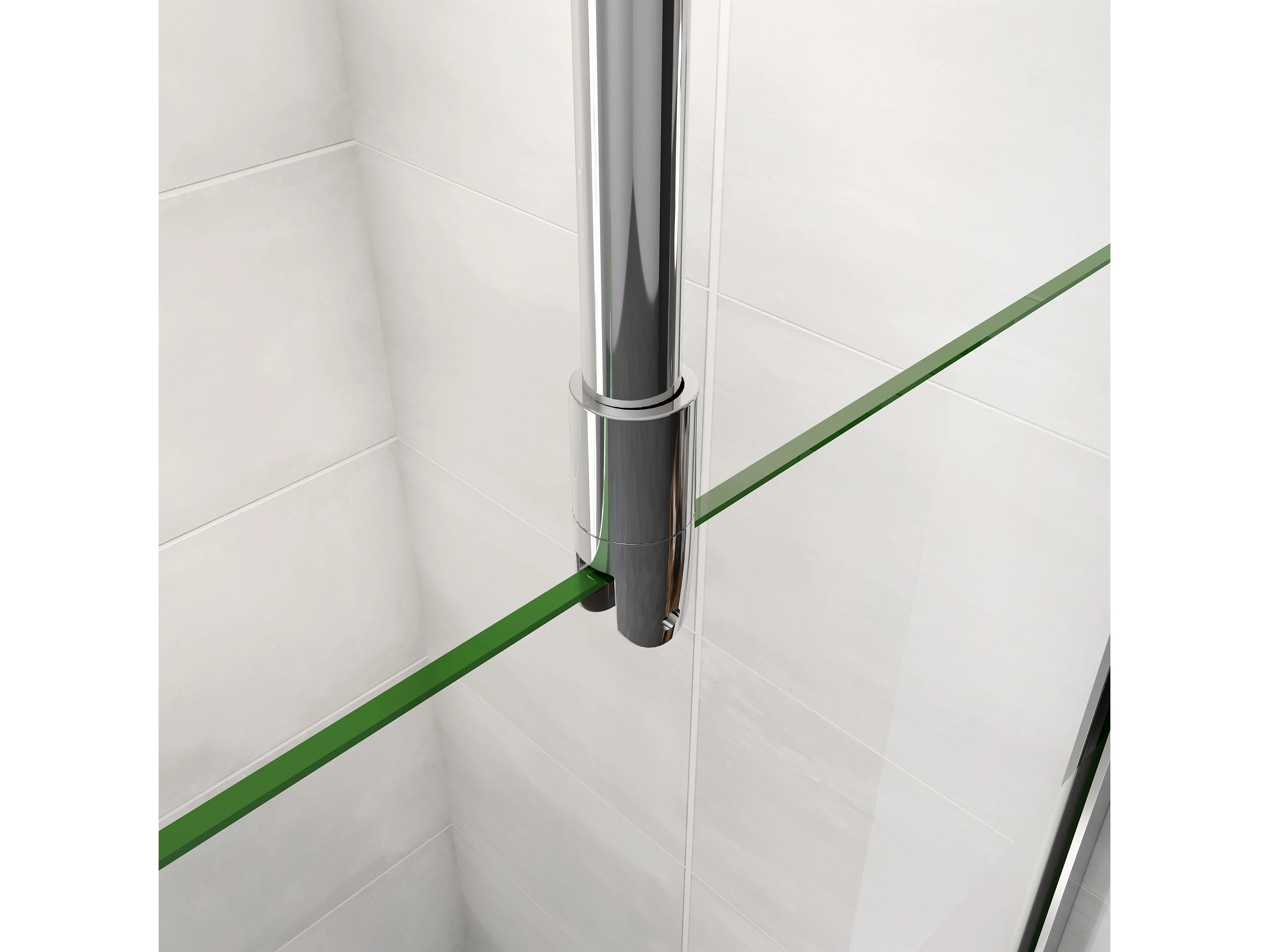 AICA paroi de douche à l'italienne chrome 100x190cm,6mm verre anticalcaire -bandes horizontales sérigraphiées,barre de fixation au plafond 90-150cm