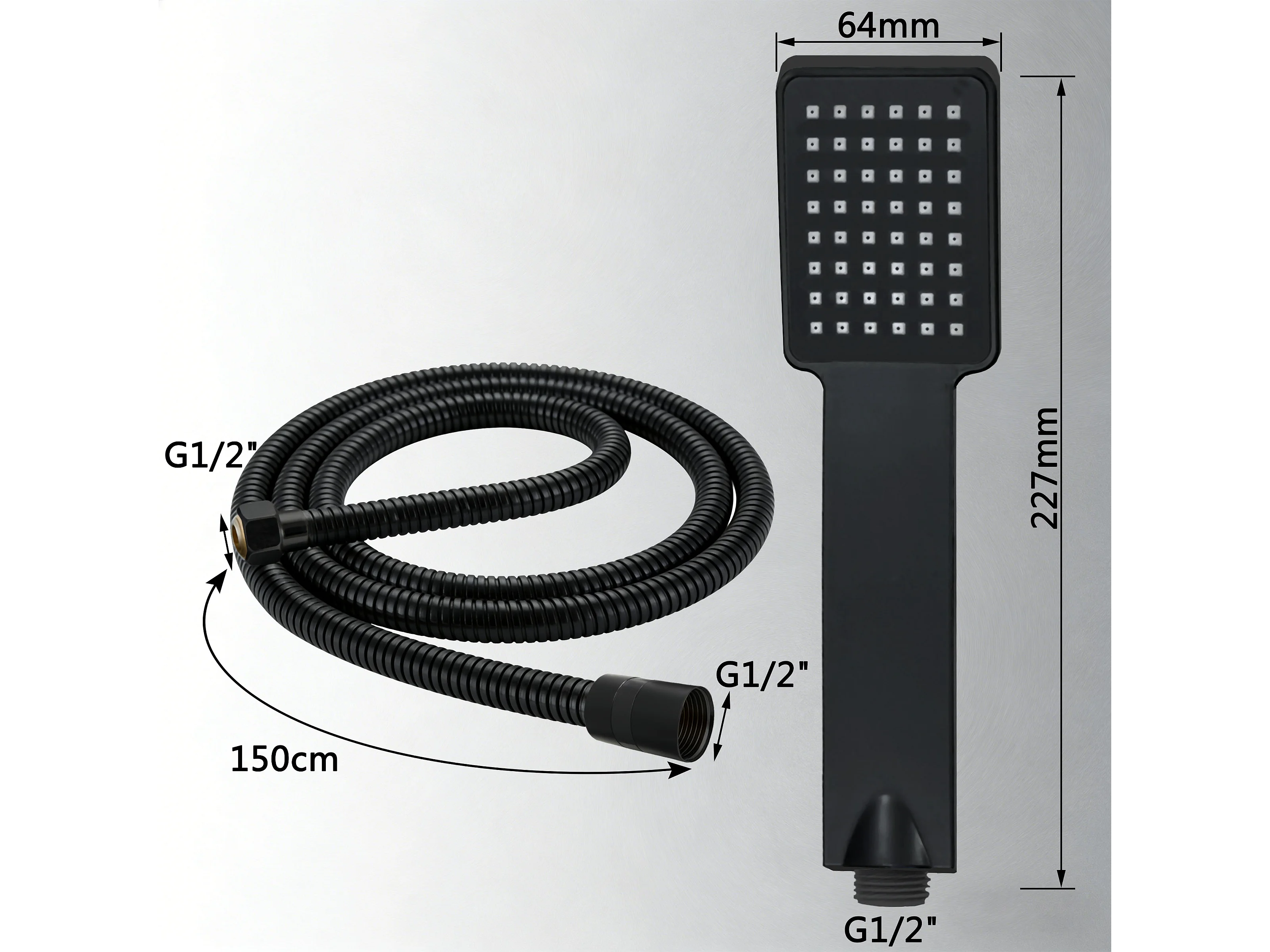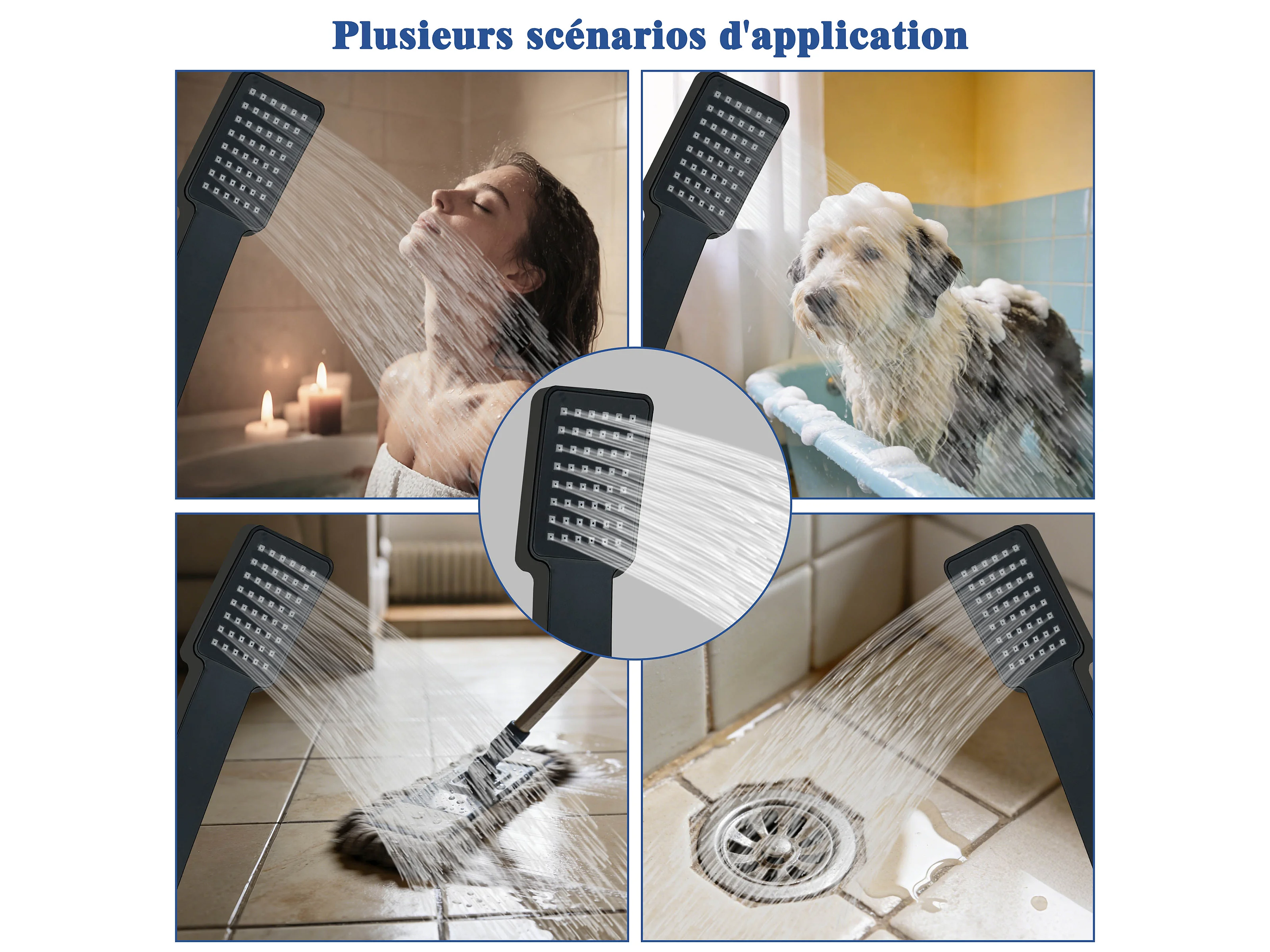 AICA Pommeau de douche avec tuyau de douche 1.5m pour salle de bain, noir