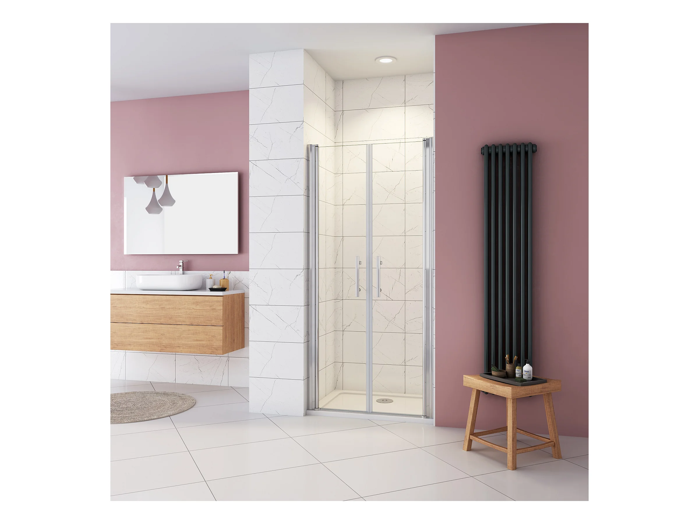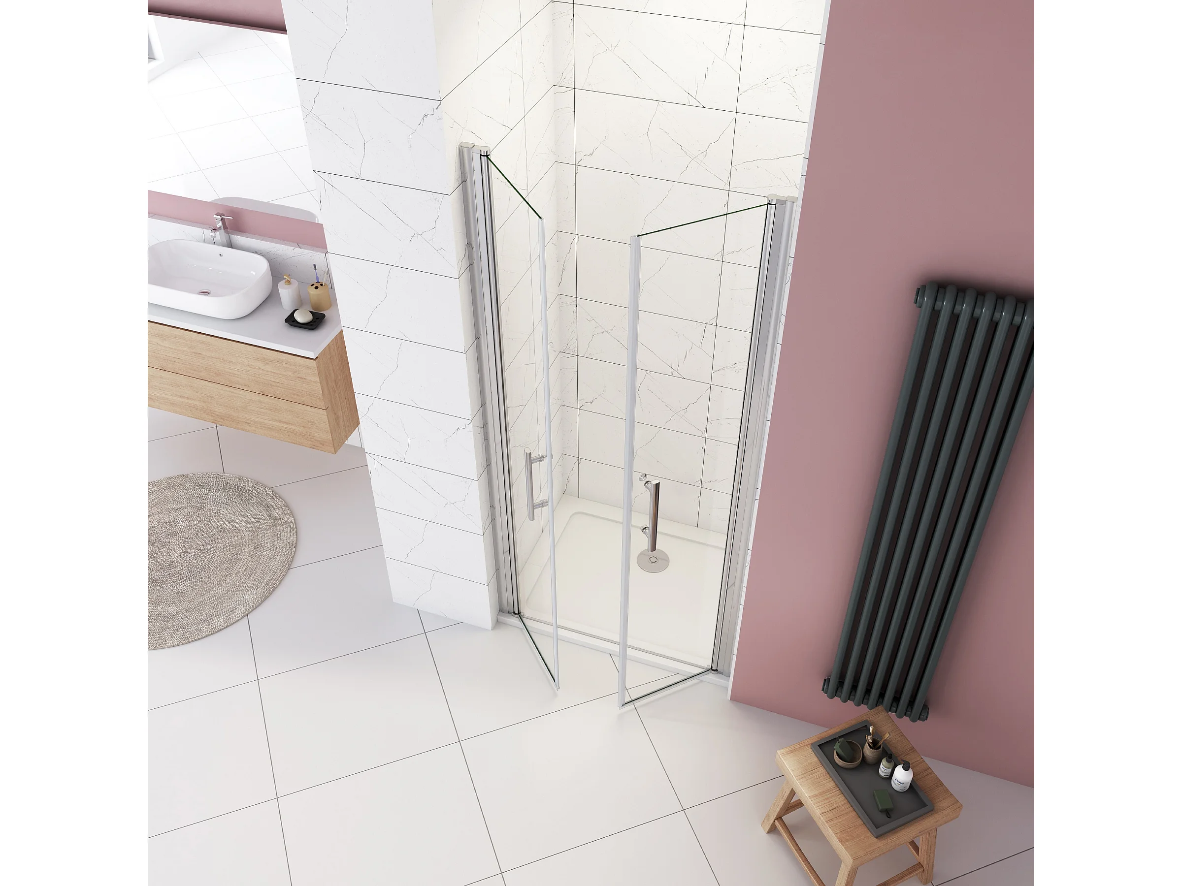 AICA porte de douche 75x197cm avec pivotante à 180° en verre sécurit clair anticalcaire