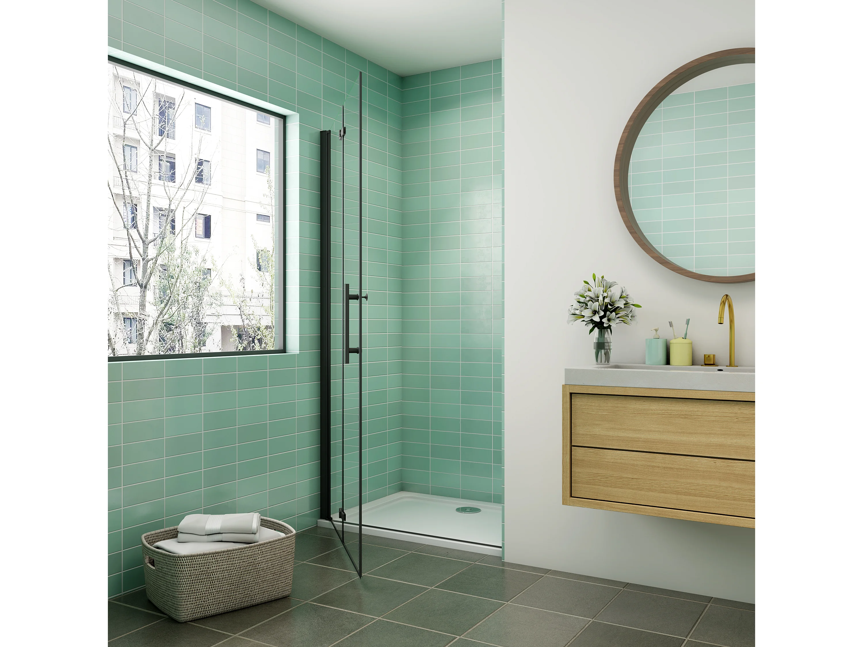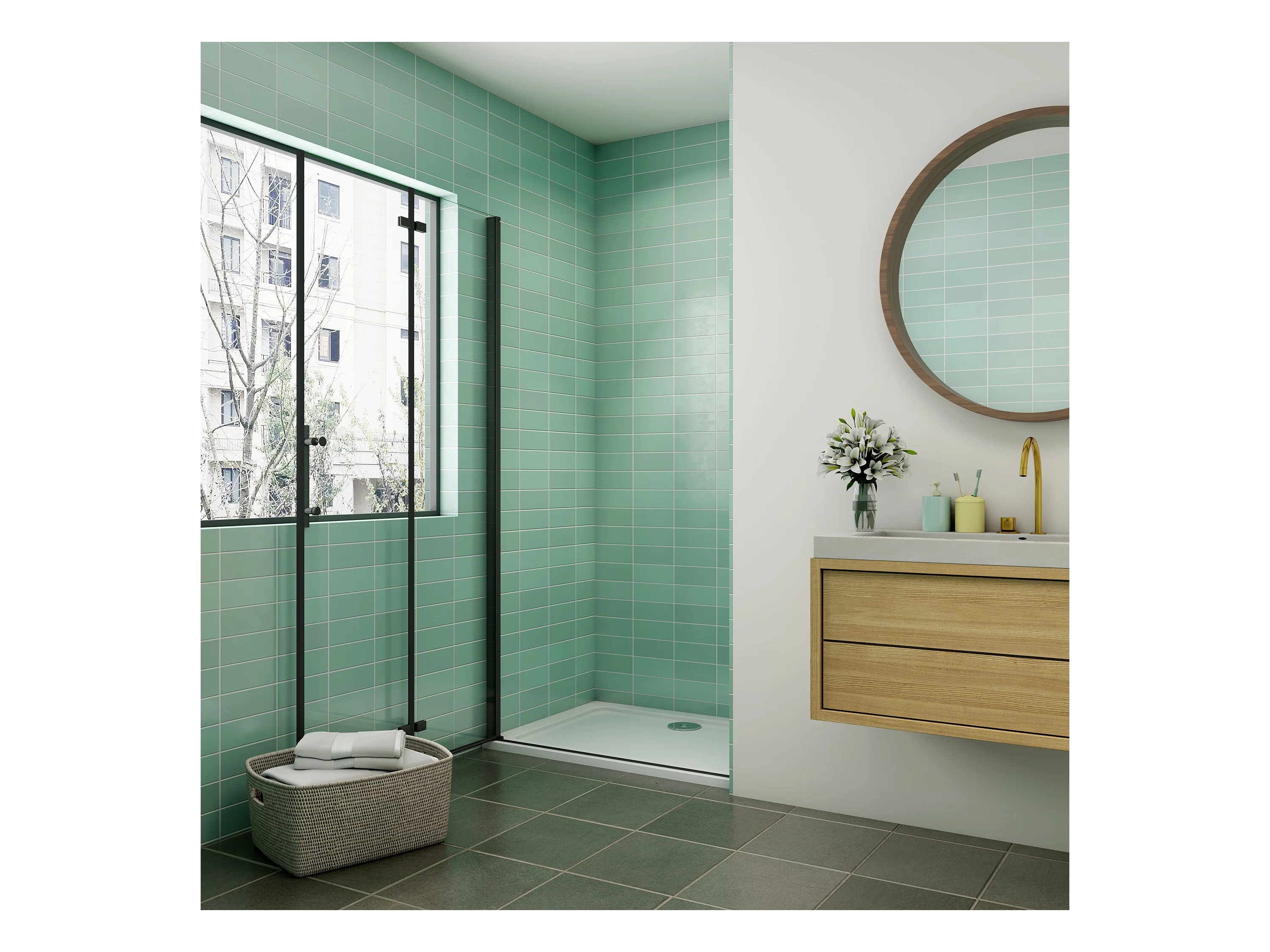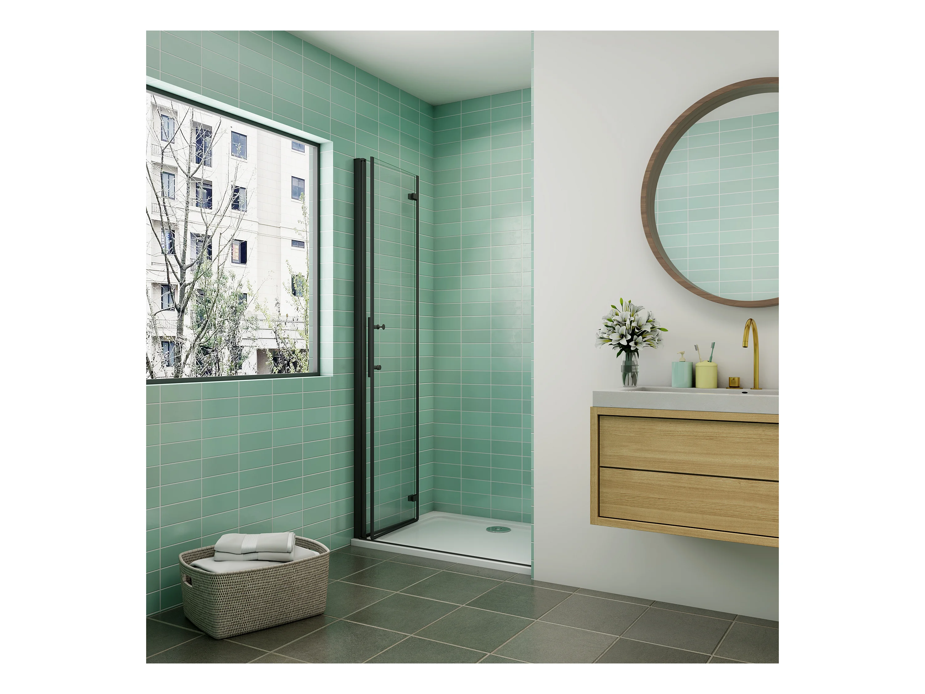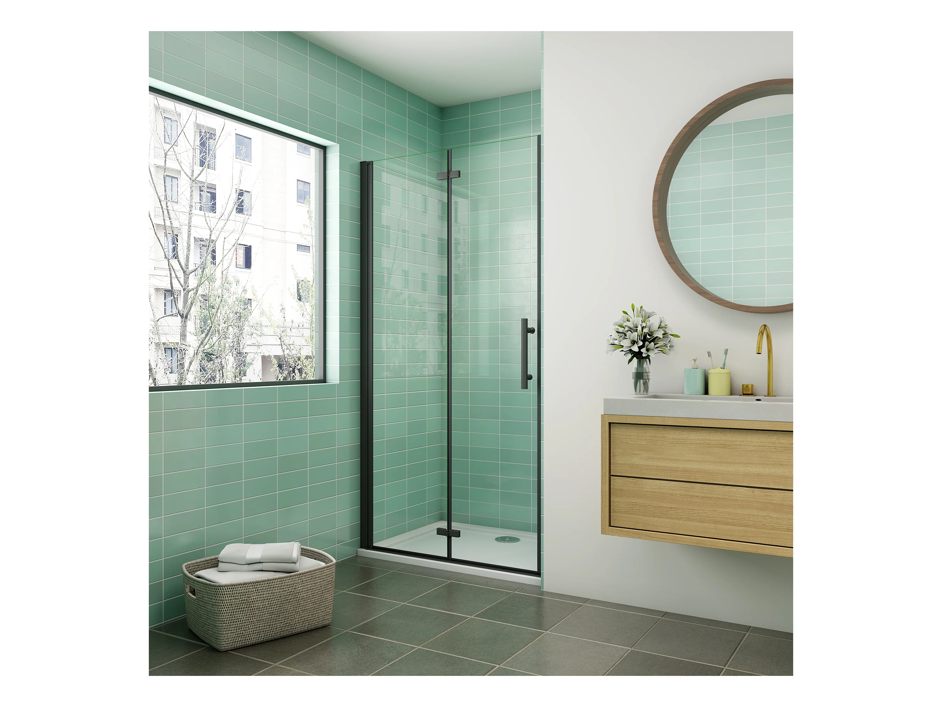 AICA Porte de douche pivotante et pliante 80x195cm,6mm verre anticalcaire avec structure en aluminium Noir Mat,design industriel élégant et pratique