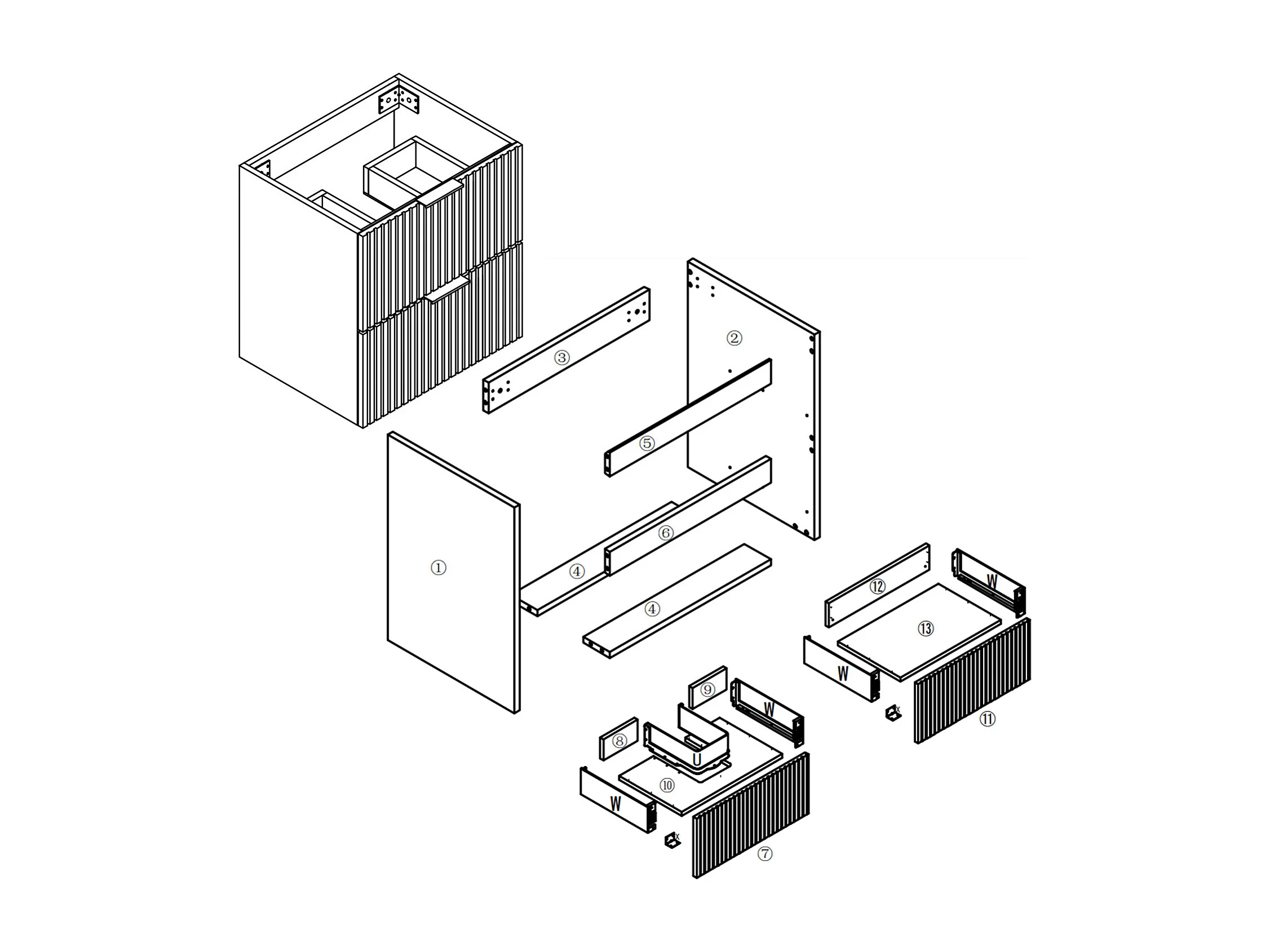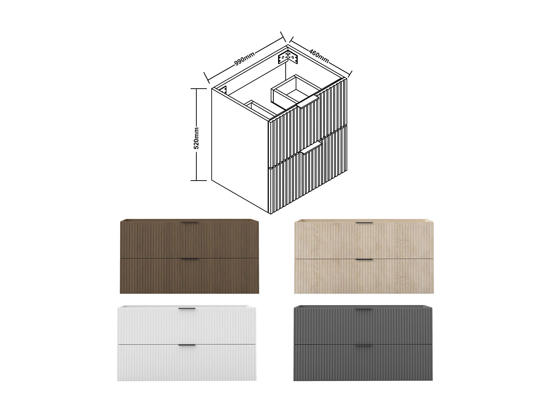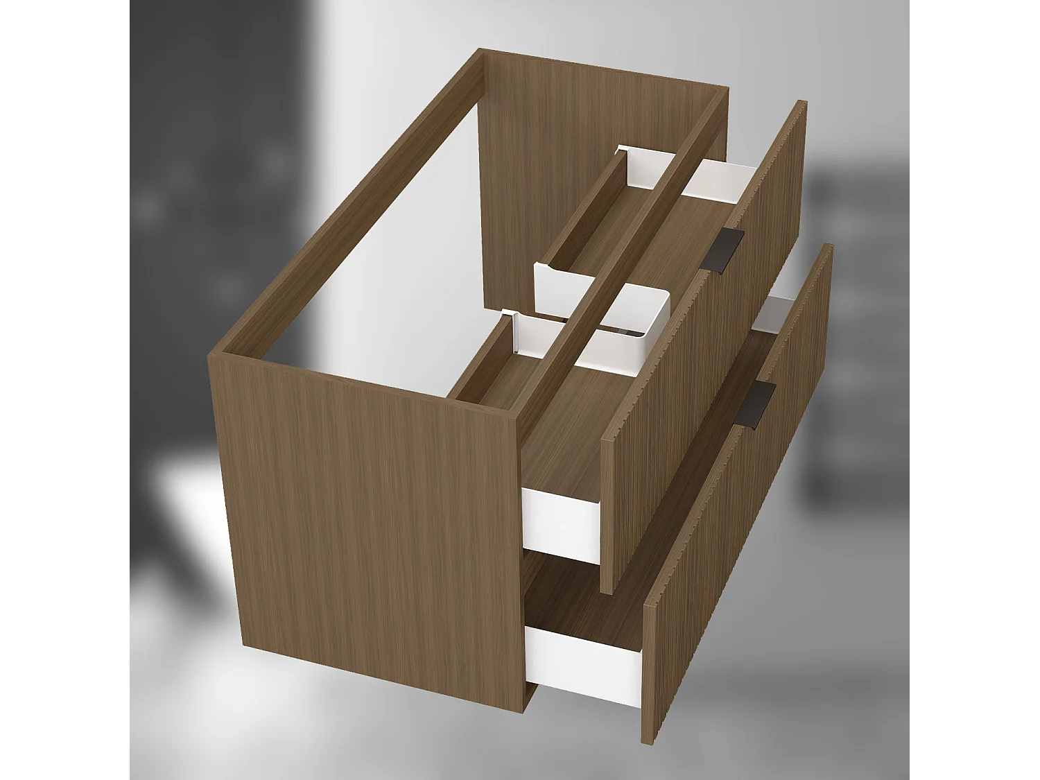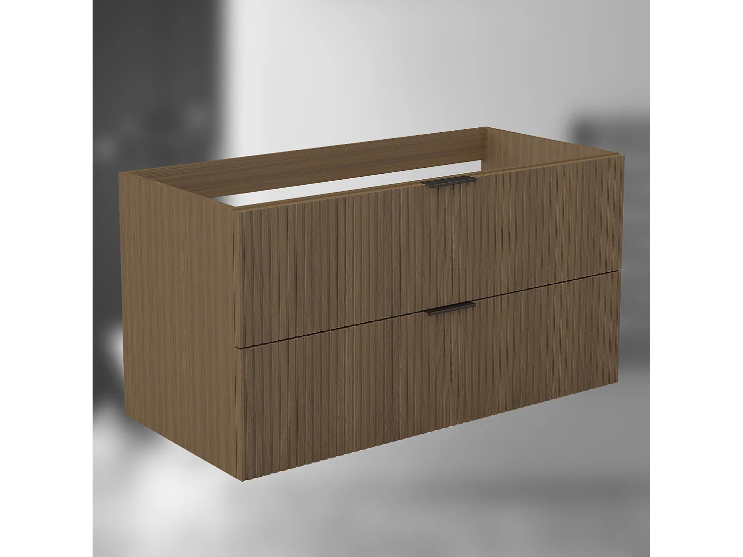 AICA SARL. Meuble de salle de bain suspendu 100 cm Noyer + 2 tiroirs, avec Poignées - sans compter vasque