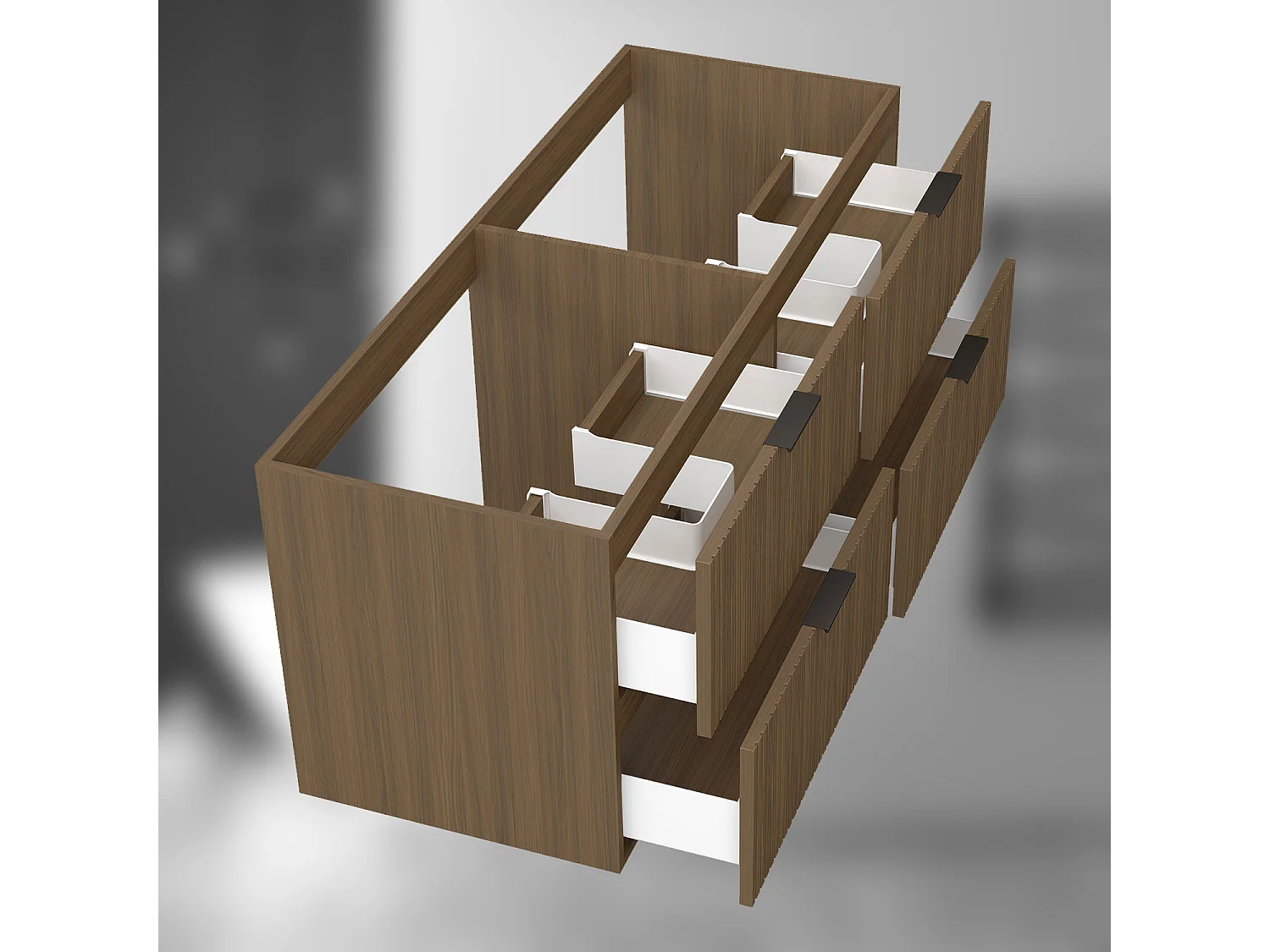 AICA SARL. Meuble de salle de bain suspendu 120 cm Noyer + 4 tiroirs, avec Poignées - sans compter vasque