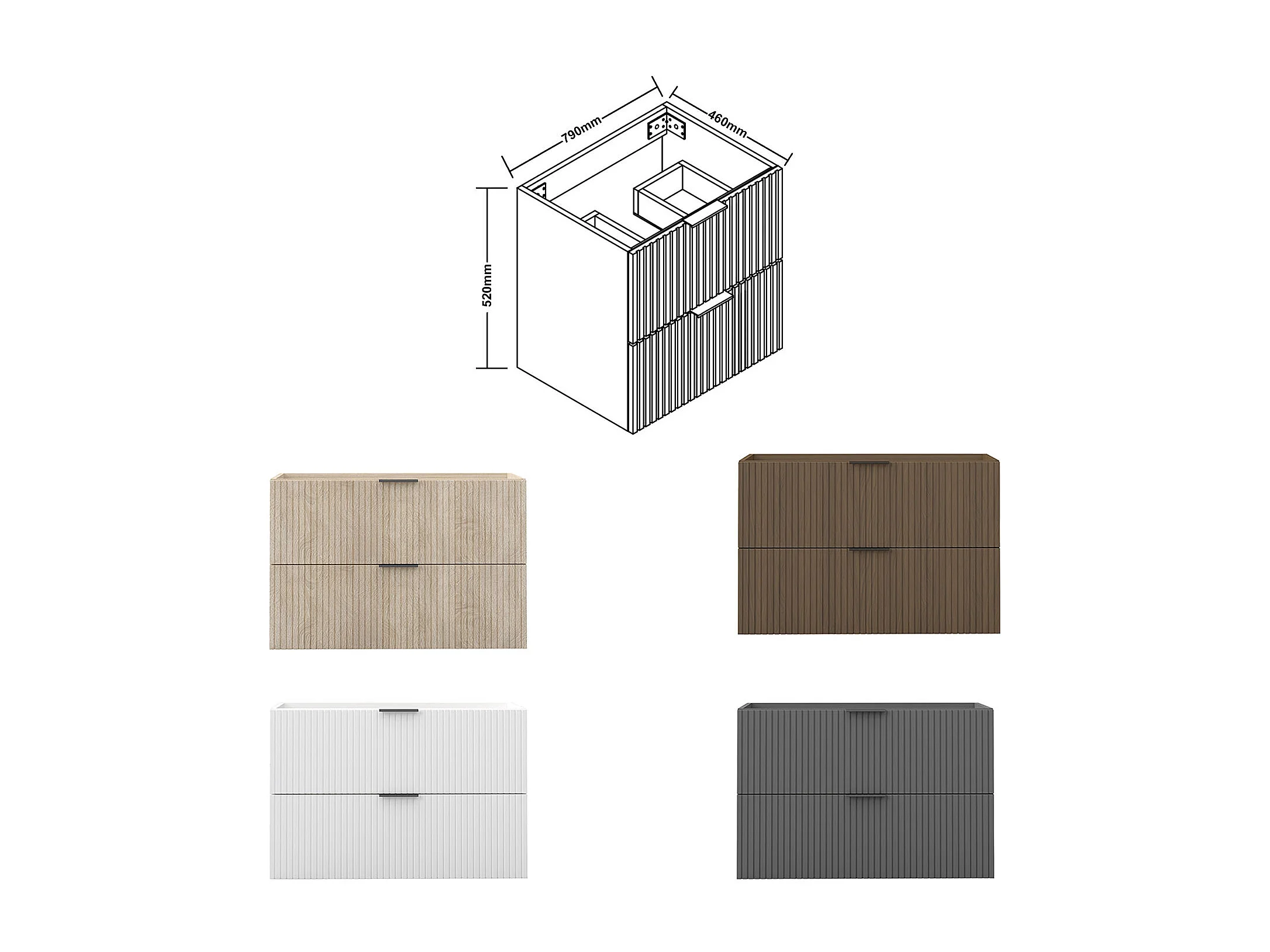AICA SARL. Meuble de salle de bain suspendu 80 cm Chêne + 2 tiroirs, avec Poignées - sans compter vasque