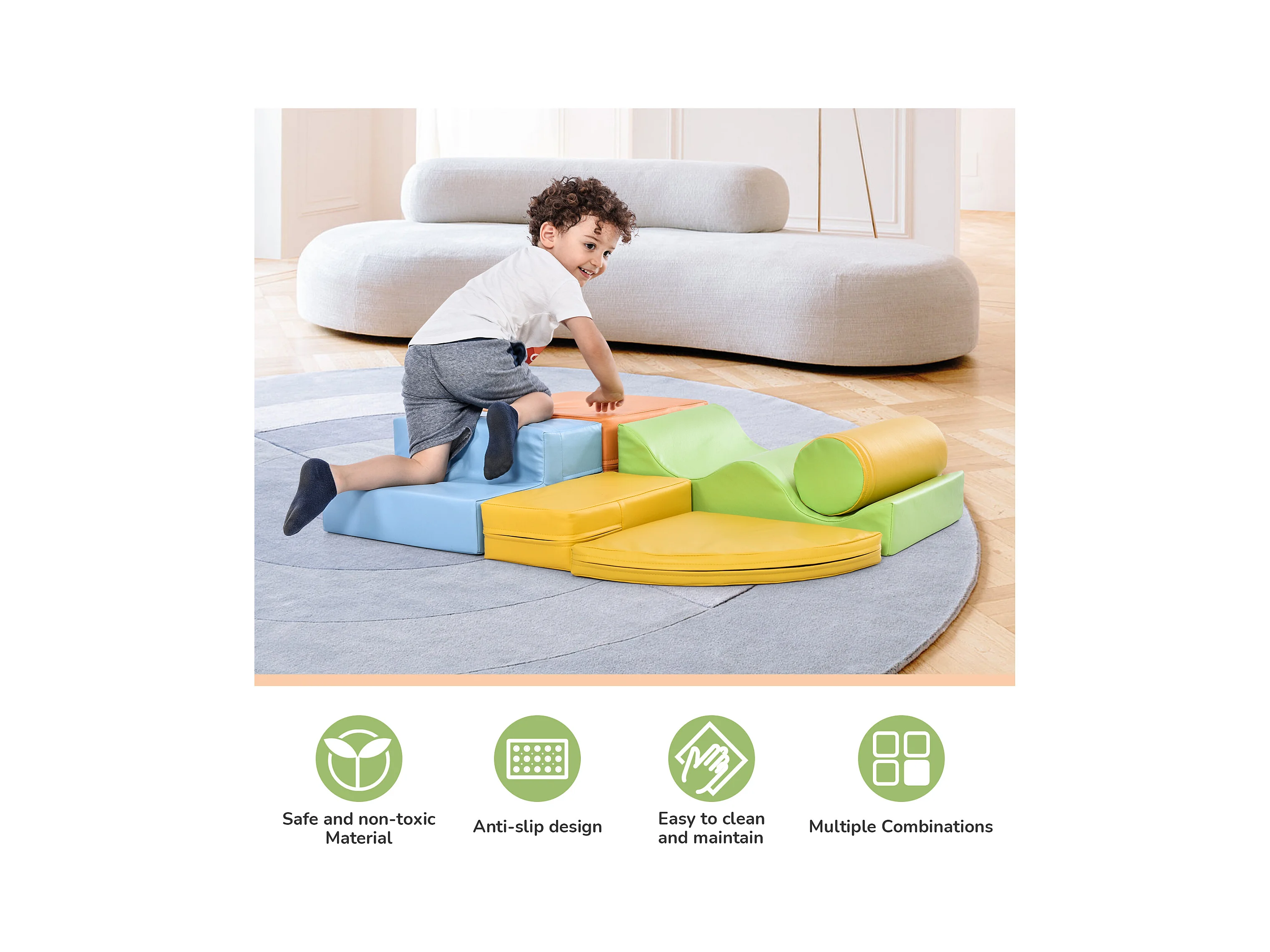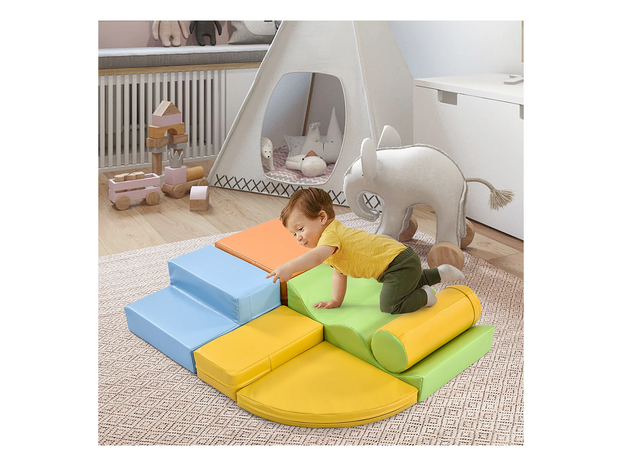 6 blocs de construction pour enfant ou bébé - Escaliers et toboggan - jouets pour grimper - PU + EPE - Combinaison libre