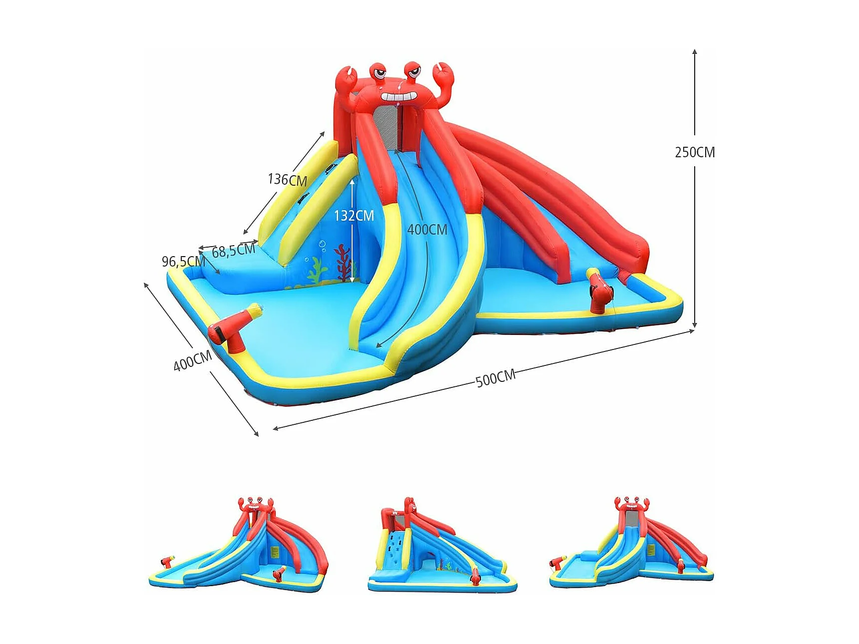 Aire de Jeux Gonflable avec 2 Toboggans, 2 Pataugeoires, 2 Canons Sac, Kit de Réparation Formes de Crabe avec Souffleur 680W