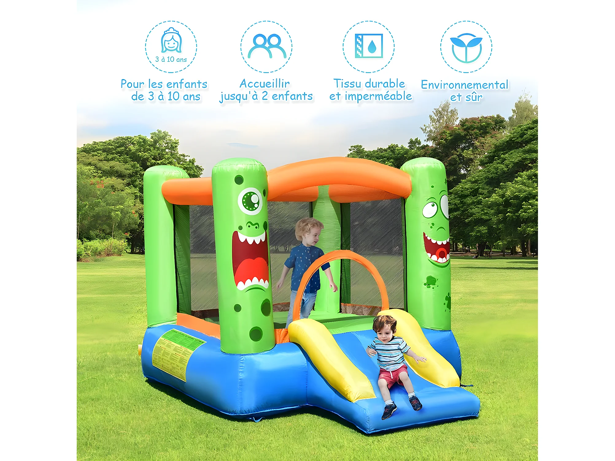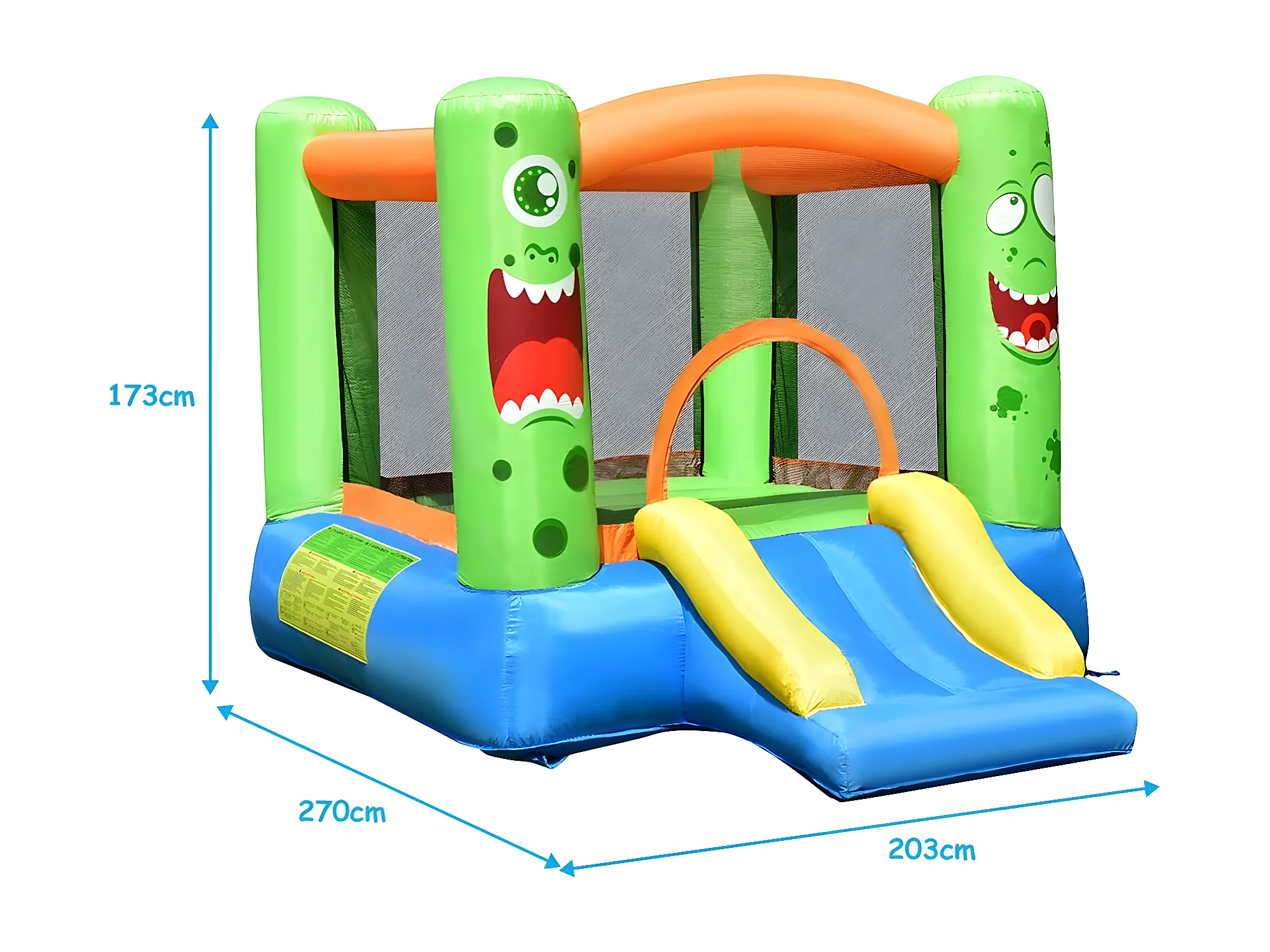 Aire de Jeux Gonflable avec Souffleur pour Enfants avec Cercle Panier de Basket-Ball Toboggan et Filet de Sécurité Kit de Réparation