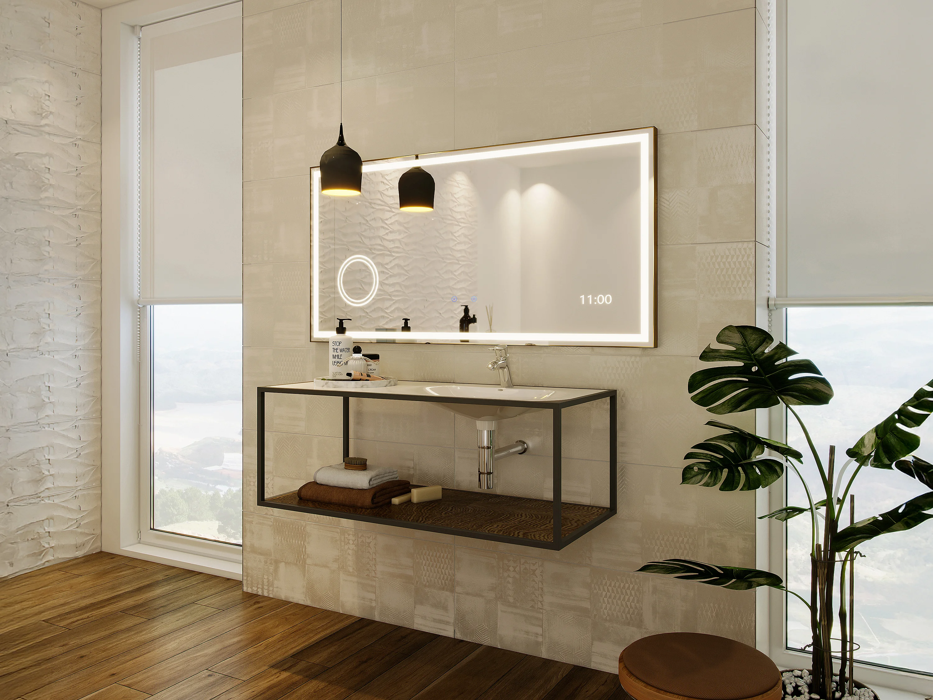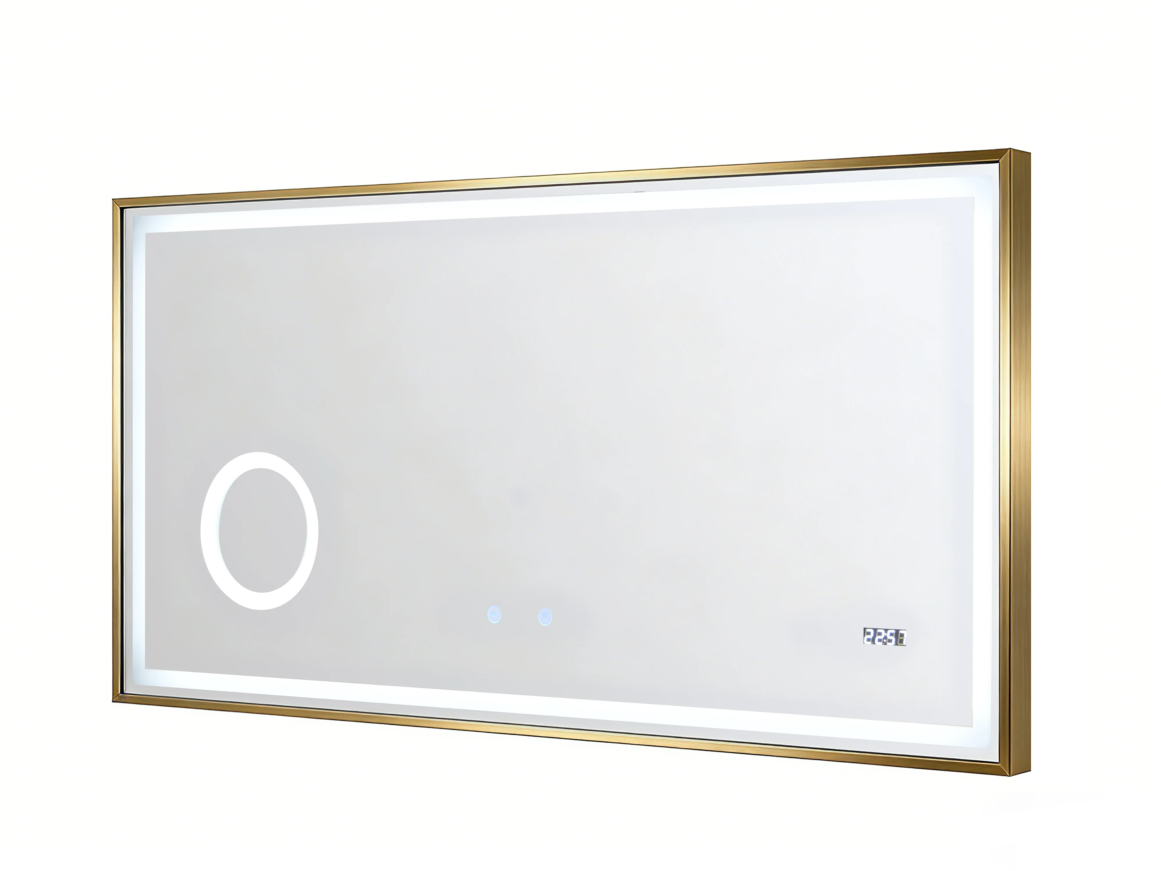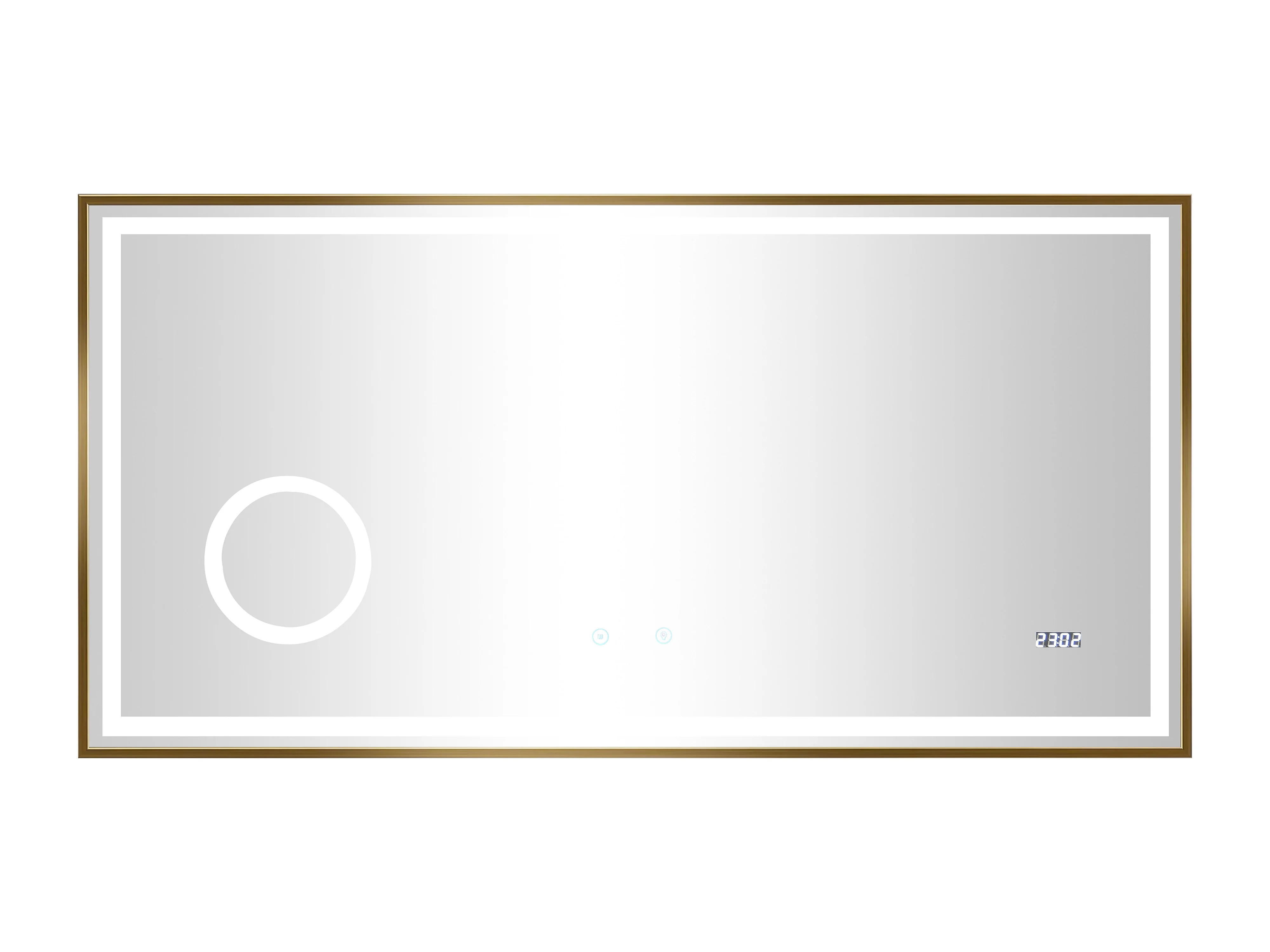 Miroir de salle de bain rectangulaire lumineux avec horloge digitale - Doré - 120 x 60 cm - AITANA