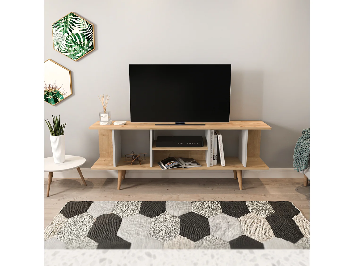 Akya Meuble TV 160 cm avec Niches pour le Rangement (Chêne et Blanc)