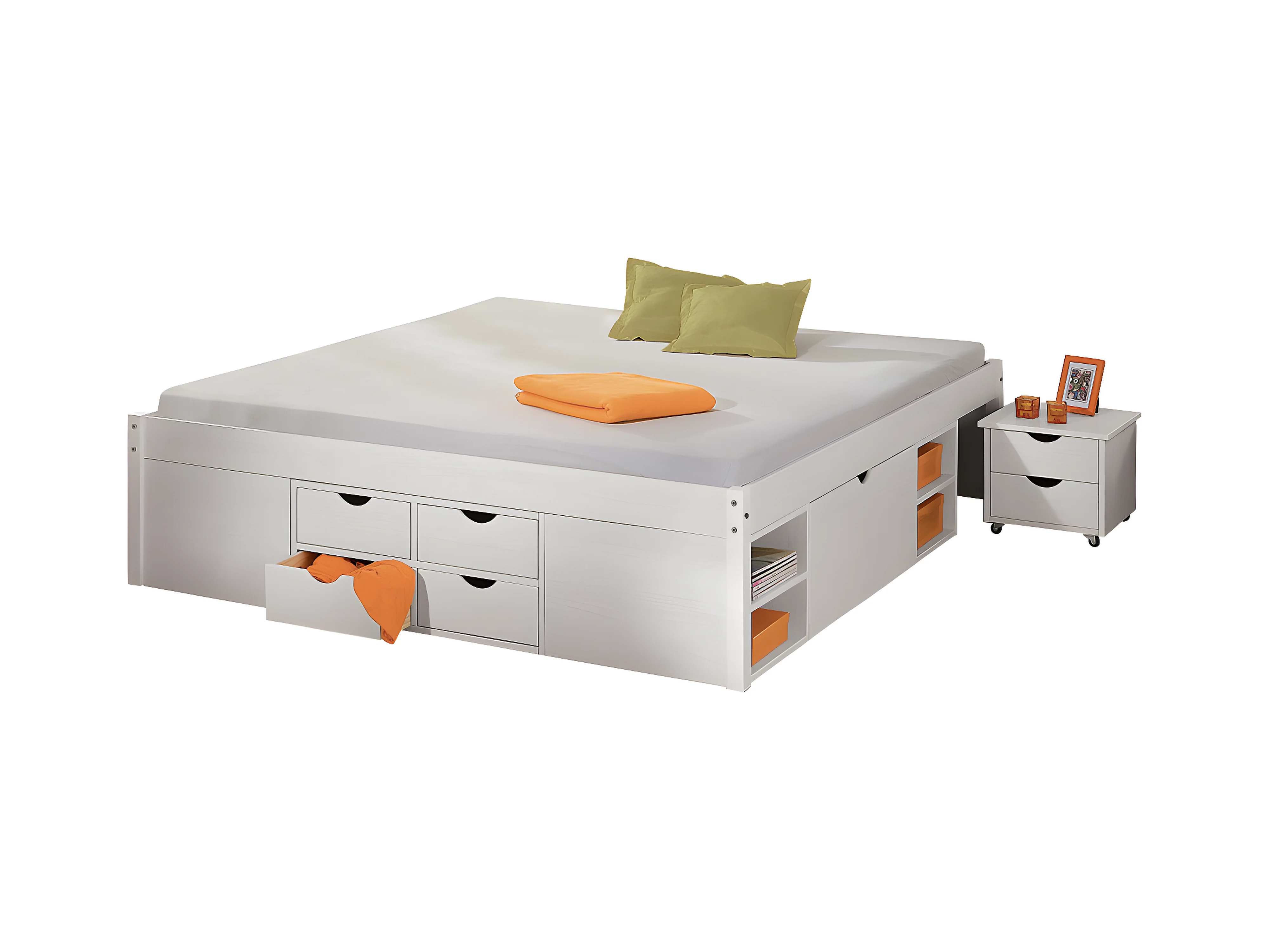 ALASKA - Pack Lit 180x200cm Multi-Rangements + Armoire 4 Portes