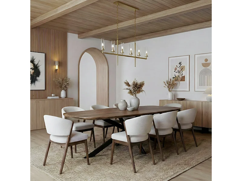 ALBA-Chaise bois patiné noyer et tissu Trendy Ecru (x2)