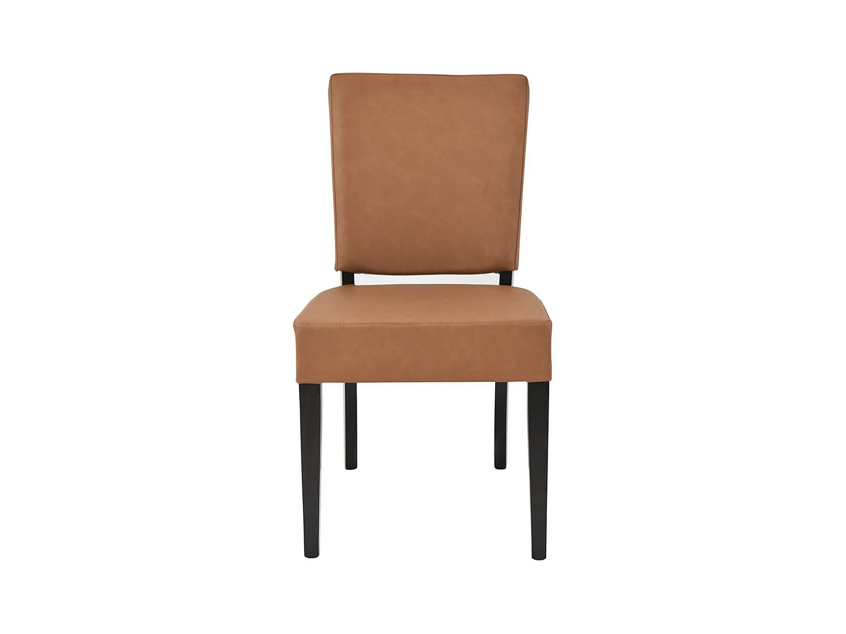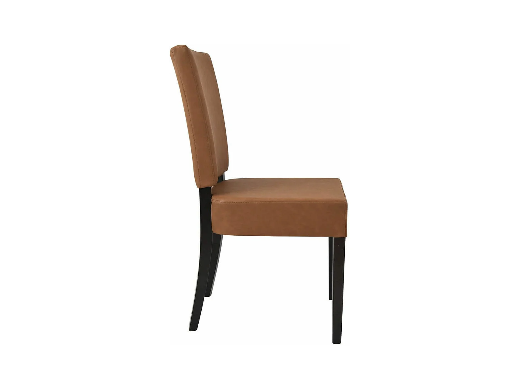ALBA - Lot de 4 Chaises Simili Cuir Cognac Piètement en Hêtre Teinté Wengé