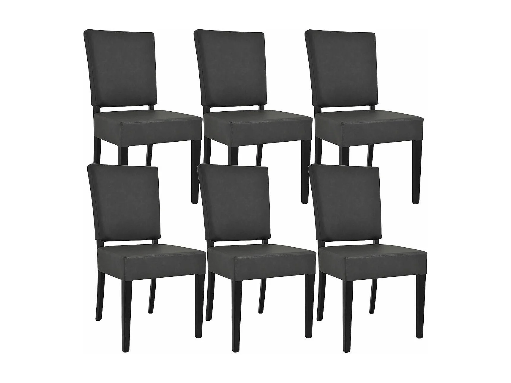 ALBA - Lot de 6 Chaises Simili Cuir Piètement en Hêtre Teinté Gris Anthracite