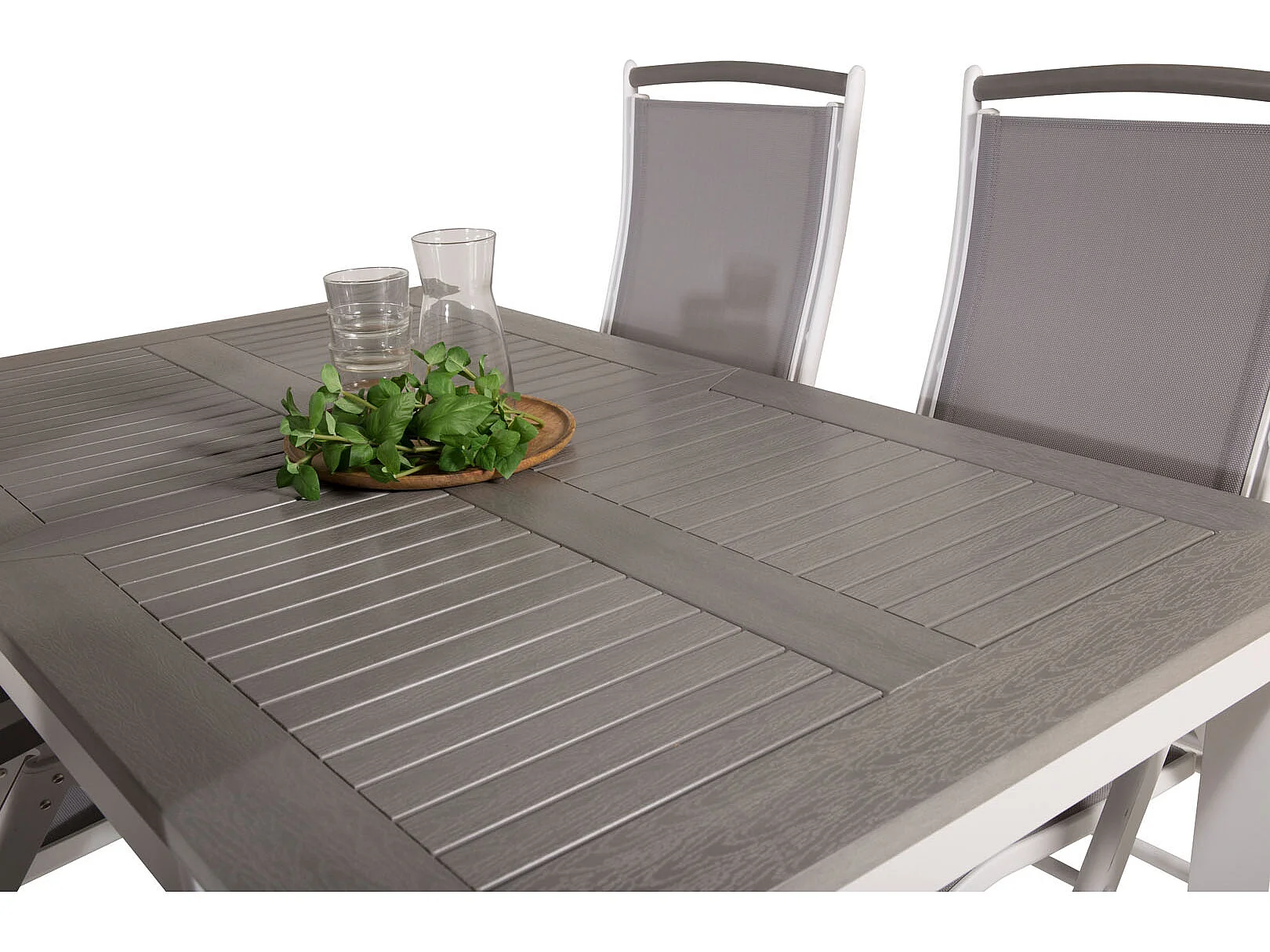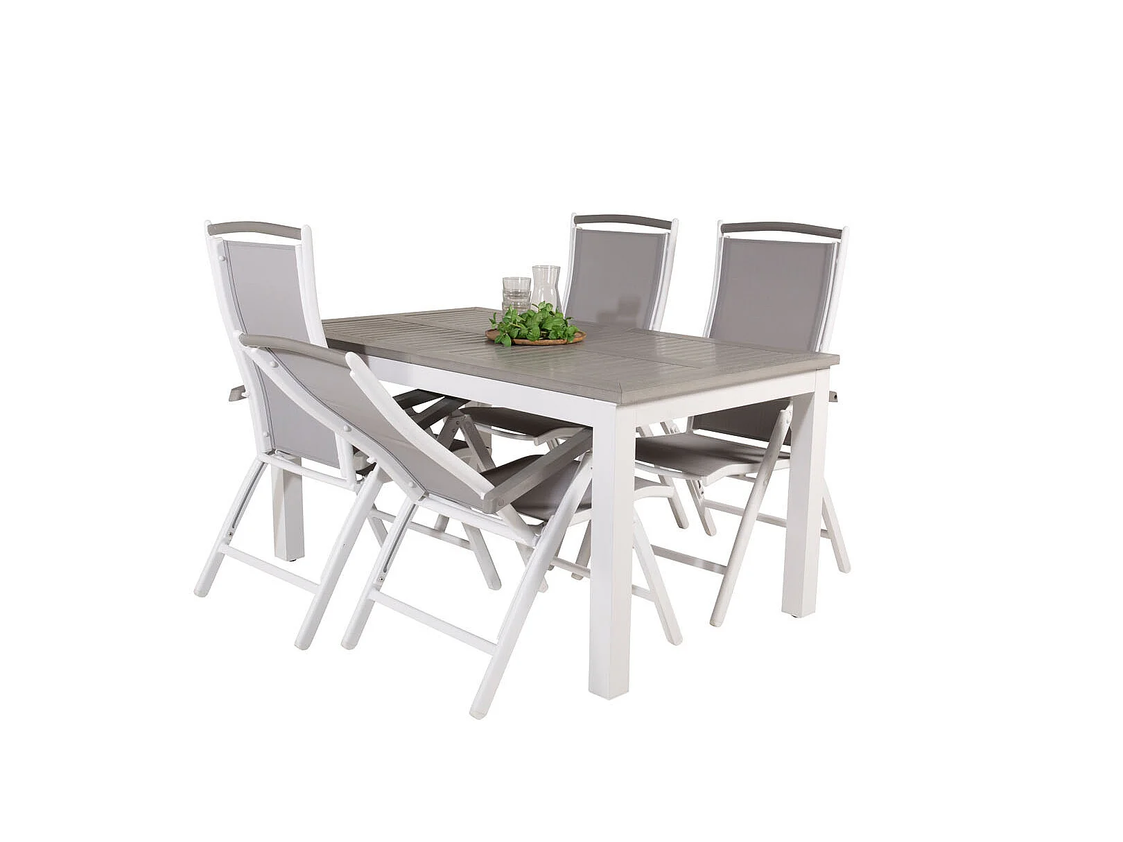 Albany Ensemble table et chaises de jardin, table 90x160/240cm et 4 chaises 5pos Albany, blanc, gris.