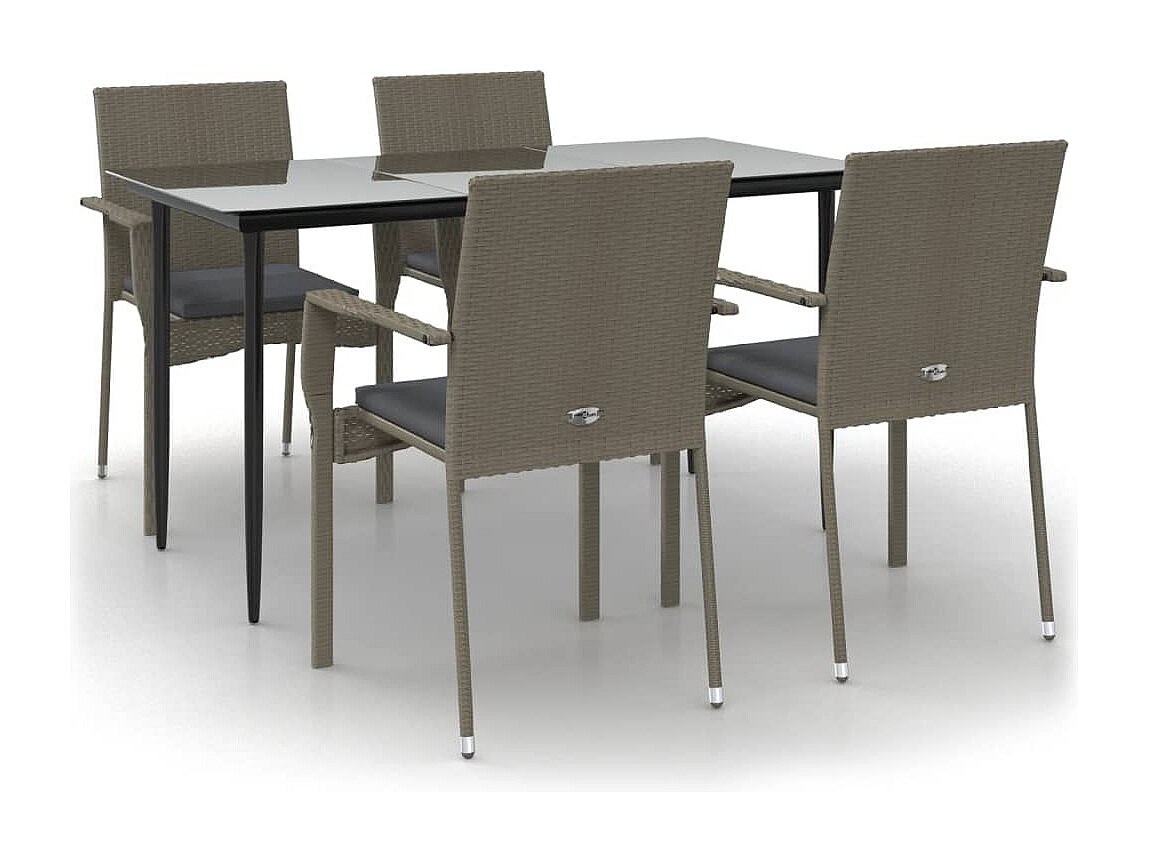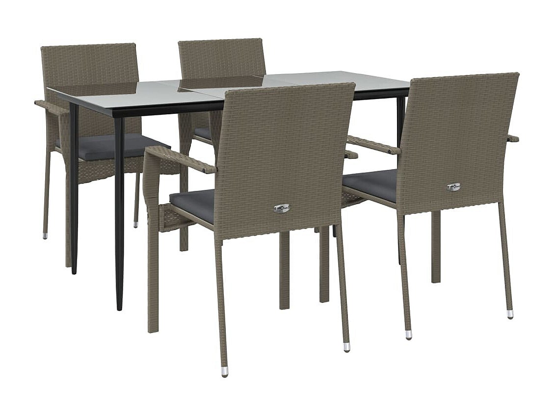 Albert Ensemble à manger de jardin coussins 5 pcs noir et gris