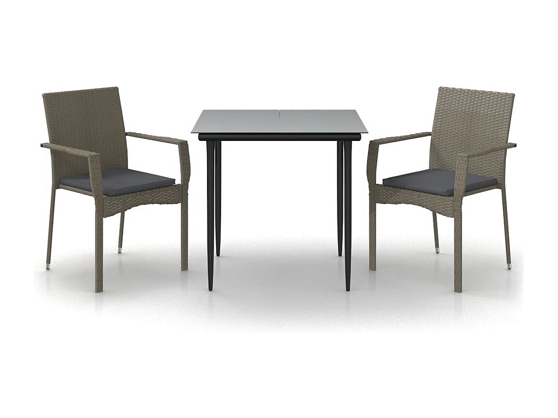 Albert Ensemble à manger jardin 3pcs avec coussins noir et gris