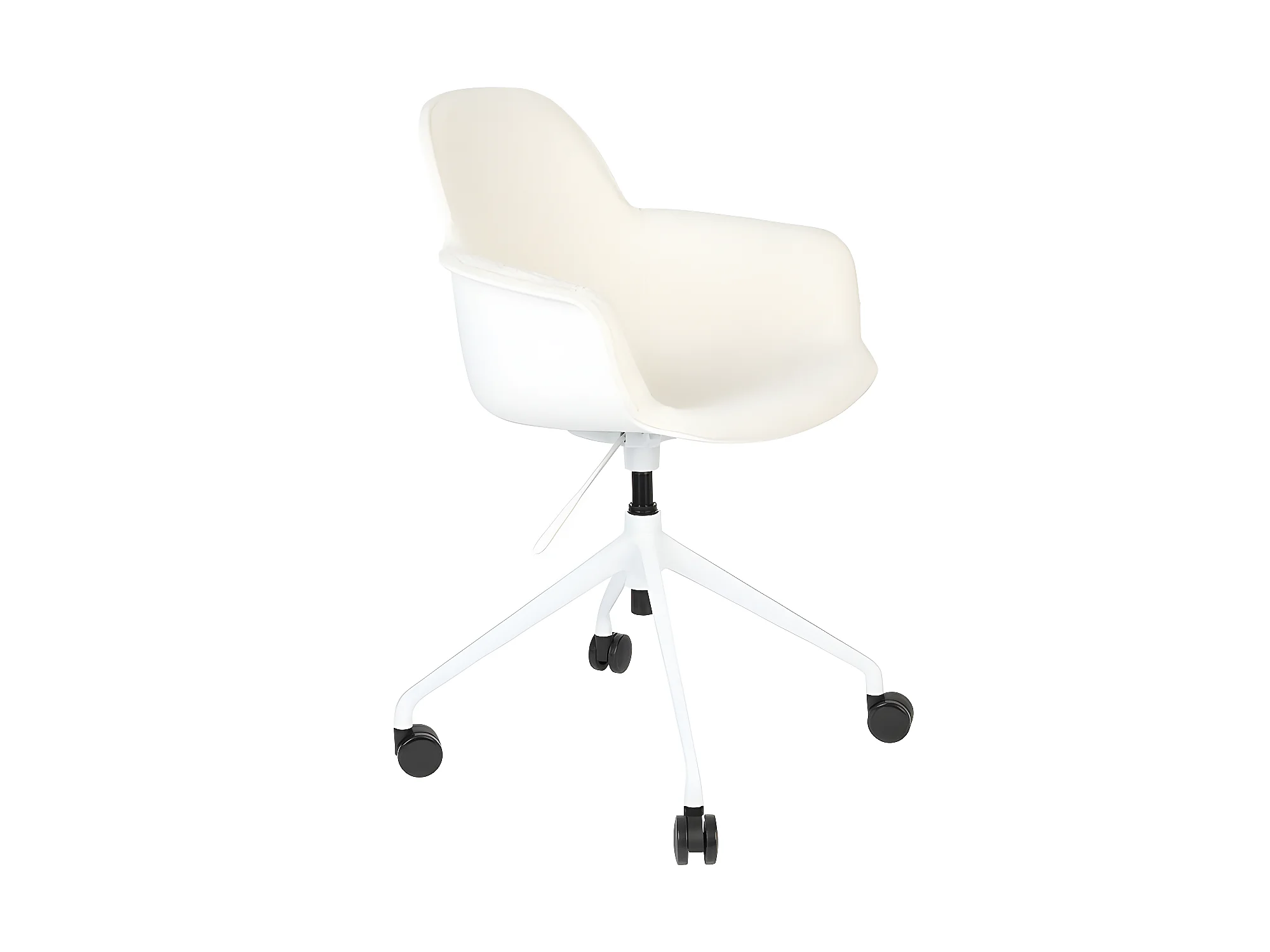Albert Kuip - Chaise de bureau en tissu bouclette avec accoudoirs pivotante à roulettes - Blanc