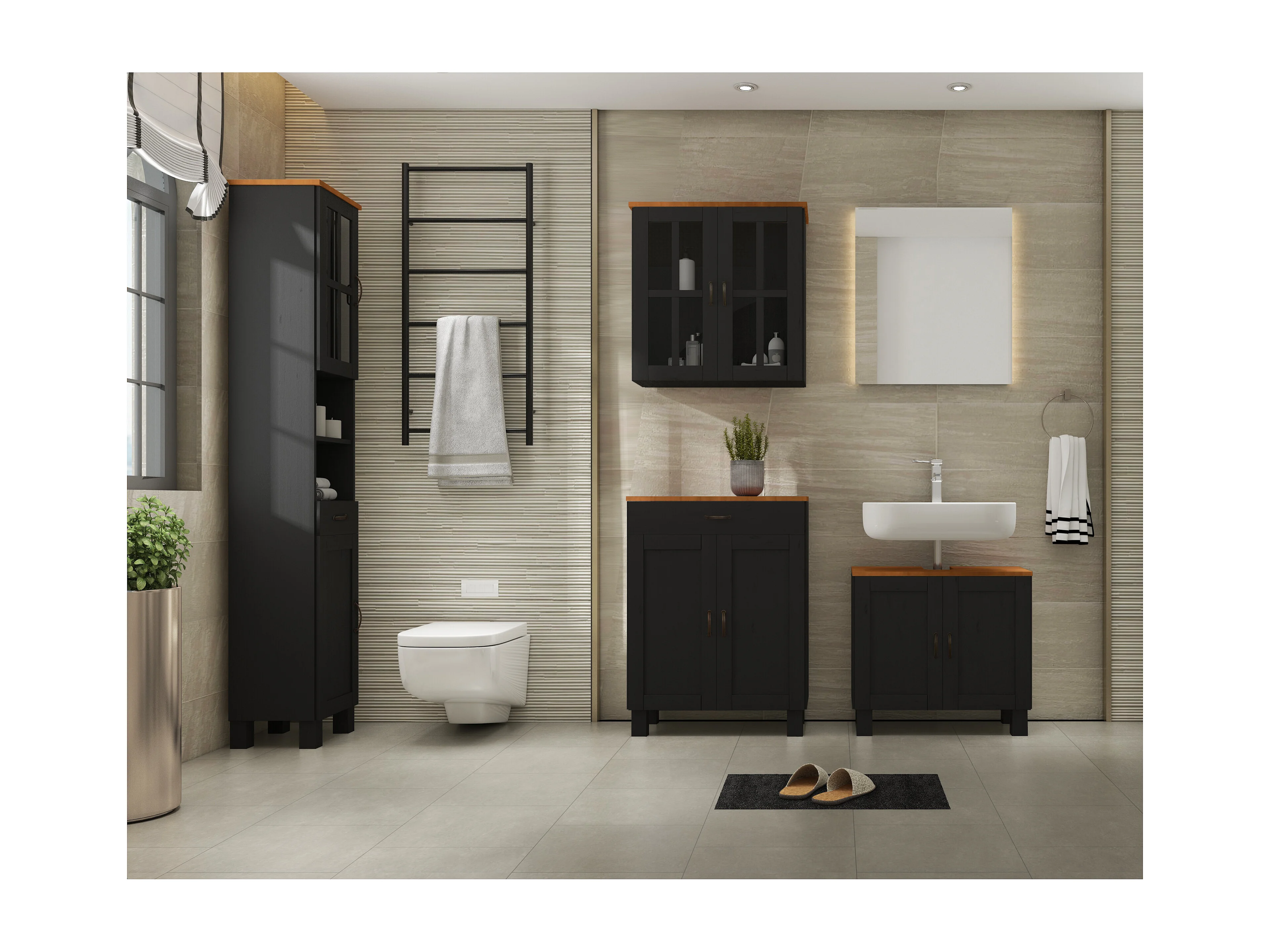 Alby | Armoire murale avec 2 portes vitrées en pin anthracite