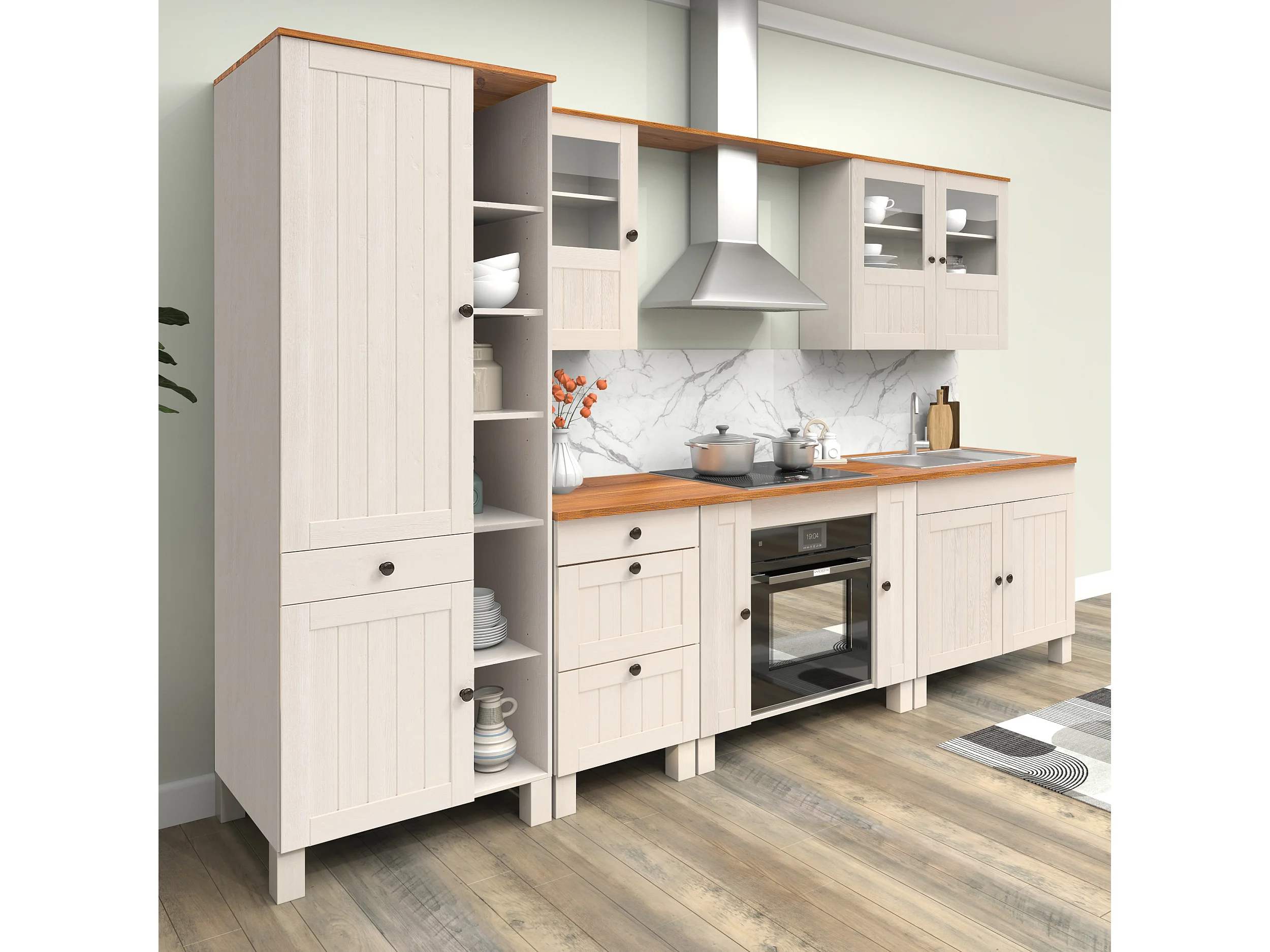 Alby II | Armoire haute avec 2 portes, 1 tiroir et 6 compartiments en pin blanc