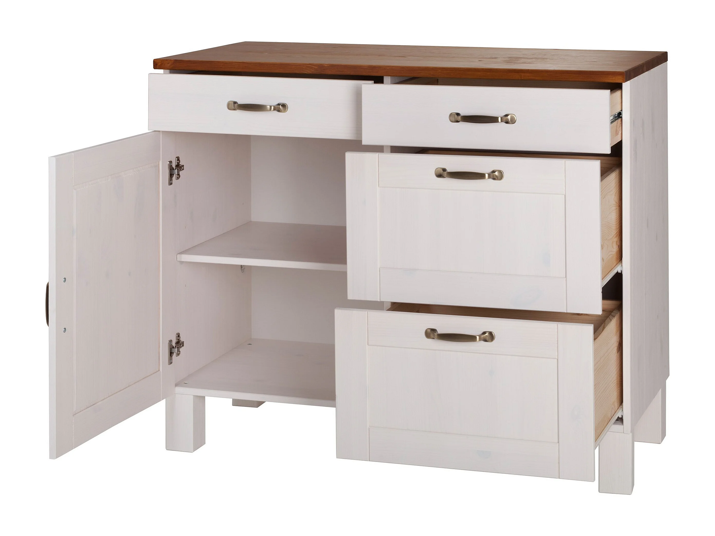Alby | Meuble de cuisine à quatre tiroirs et une porte en bois de pin