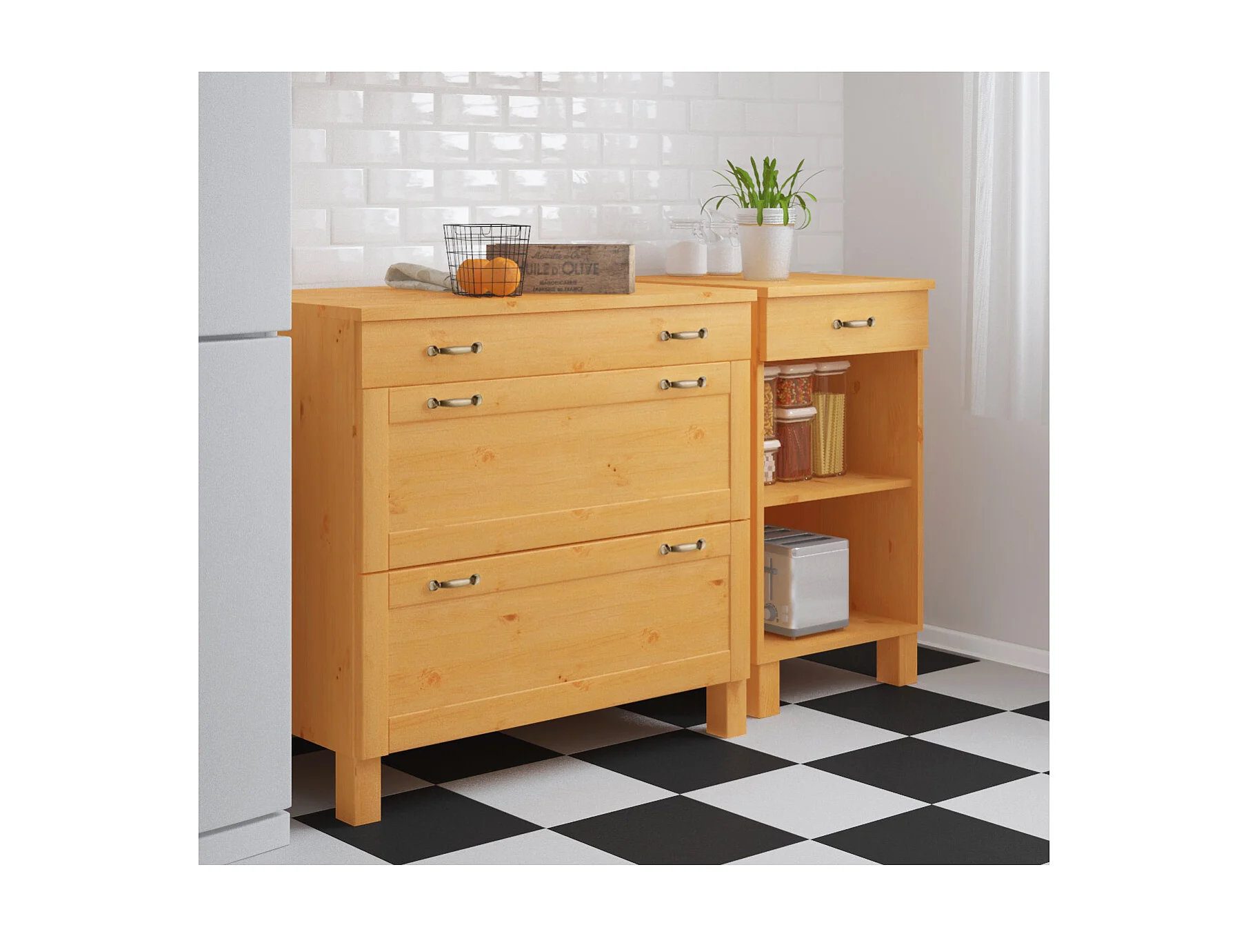 Alby | Meuble de cuisine à trois tiroirs en bois de pin